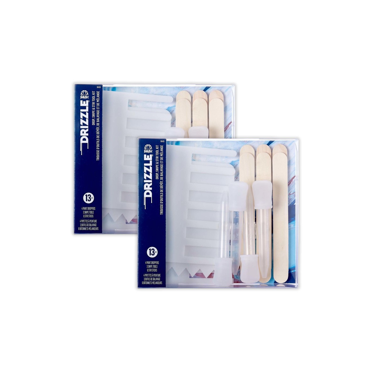 Acrylic paint pouring has never been easier than with the FolkArt Drizzle Pouring Drop, Swipe, and Stir Tool Kit. This tool kit provides you with a variety of tools to give your fluid art different visual effects when you use this kit with FolkArt Drizzle Premium Pre-Mixed Fluid Pouring Acrylic Paint. Express yourself through loose and colorful art with these handy tools and ready-to-pour colors! Great for a variety of fluid art techniques - perfect for letting your creativity flow. There are no two pours that are alike! Explore and experience the freedom of expression through your fluid paintings and creations with these durable acrylic pouring paint supplies. Unleash your creativity with FolkArt Drizzle Pouring Drop, Swipe, and Stir Tool Kit! Free your mind, free your color! Each 13-piece kit includes 4 paint droppers, 6 wood stir sticks, and 3 swipe tools. Sold as 2 sets for a total of 26 pieces.