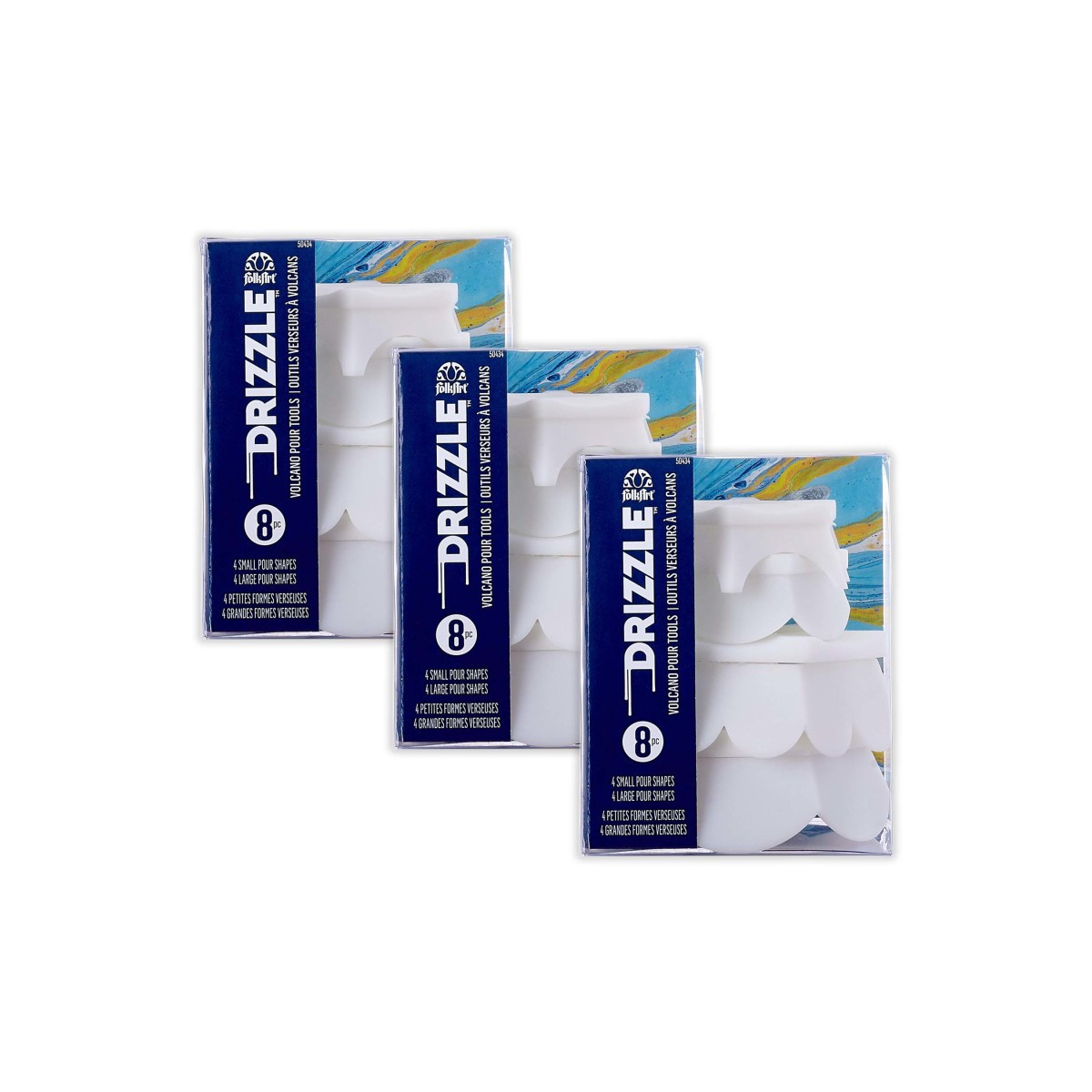 Acrylic paint pouring has never been easier than with the FolkArt Drizzle Volcano Pouring Set. This 8-piece volcano set is a fun way to create fluid art with different visual effects to make a unique piece of art with FolkArt Drizzle Premium Pre-Mixed Fluid Pouring Acrylic Paint. Each piece is stackable and interchangeable to create different pouring effects. You can easily pour your acrylic pouring paint over or through each of these pieces. Express yourself through loose and colorful art with this handy tool and ready-to-pour colors! Great for a variety of fluid art techniques - perfect for letting your creativity flow. There are no two pours that are alike! Explore and experience the freedom of expression through your fluid paintings and creations with this durable acrylic pouring paint kit. Unleash your creativity with FolkArt Drizzle Volcano Pouring Set! Free your mind, free your color! Each 8-piece handy paint pouring tool set includes 2 small bases, 2 small tops, 2 large bases, and 2 large tops. Sold as 3 sets for a total of 24 pieces.