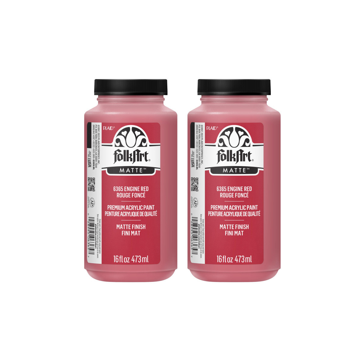 FolkArt Acrylic Paint Matte, 16oz., Engine Red, Pack of 2