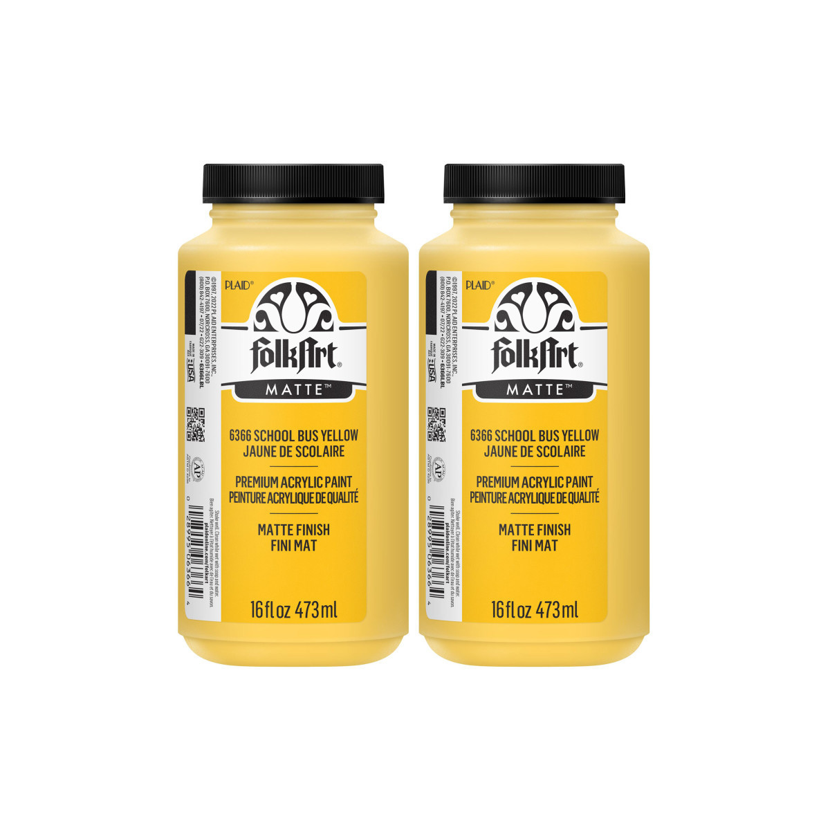 FolkArt Acrylic Paint Matte, 16oz., School Bus Yellow, Pack of 2