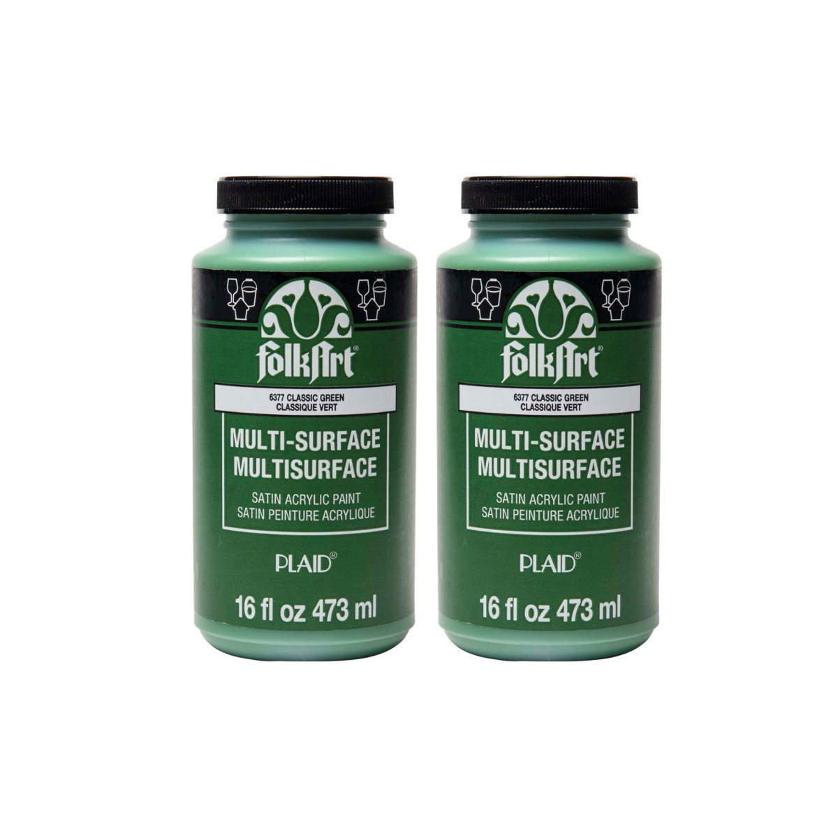 FolkArt Acrylic Paint Multi-Surface Satin, 16oz., Classic Green, Pack of 2
