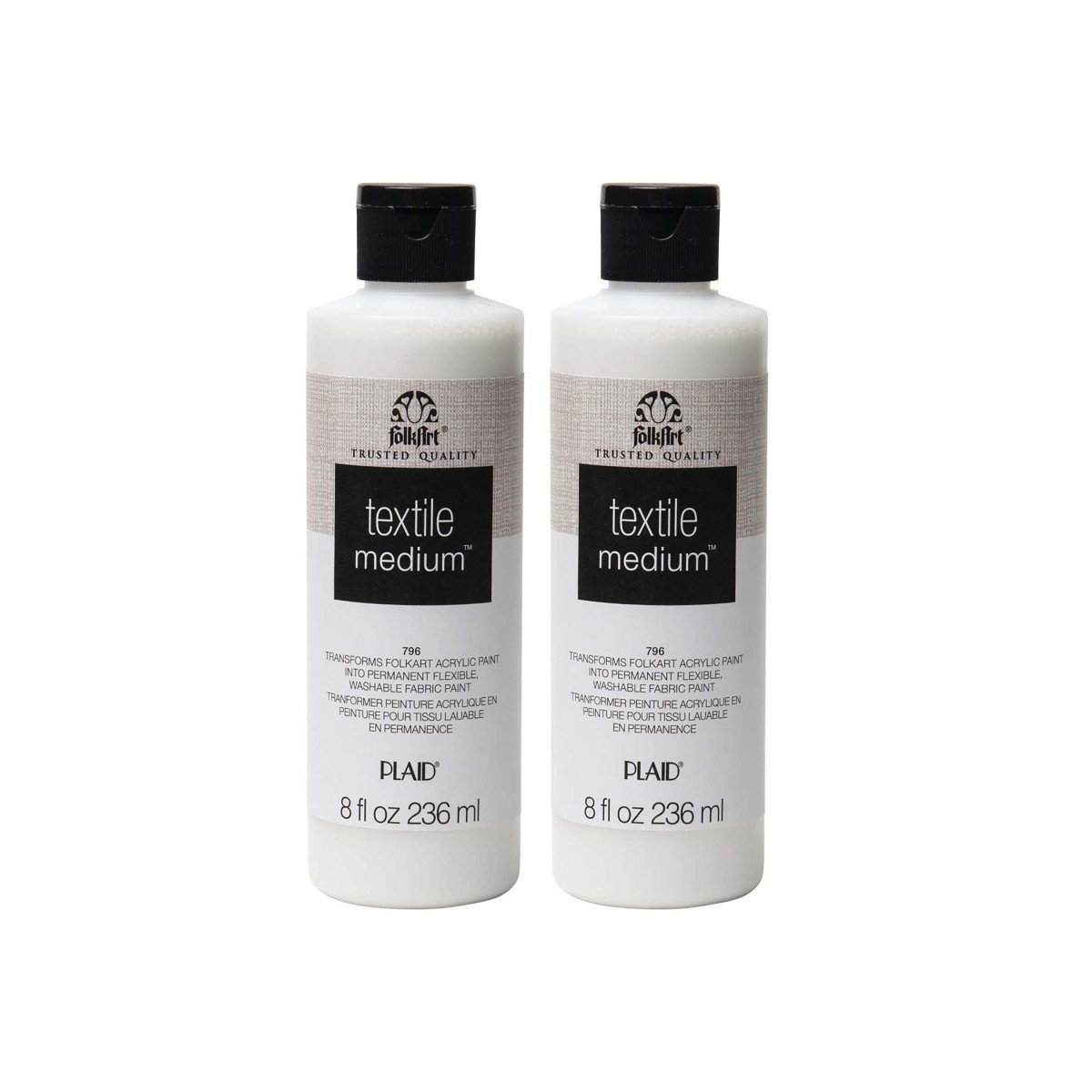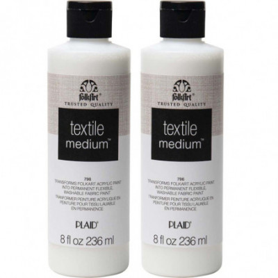 FolkArt Textile Medium is the perfect way to make your favorite FolkArt colors into a fabric paint. This unique medium is the easiest way to hand paint your fabric arts and crafts with durable colors. When mixed with FolkArt Acrylic Paint, this versatile combination is permanent and machine-washable. Apply this water-based, non-toxic mix to fabric for a quality finished piece that won't crack. All your painted fabrics will look vivid and rich wash after wash. Make FolkArt Textile Medium a must-have for all your fabric painting art supplies! Sold as a pack of 2 bottles.