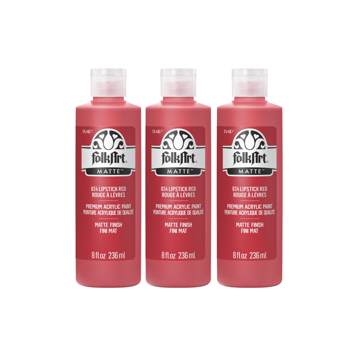 FolkArt Acrylic Paint Matte, 8oz., Lipstick Red, Pack of 3