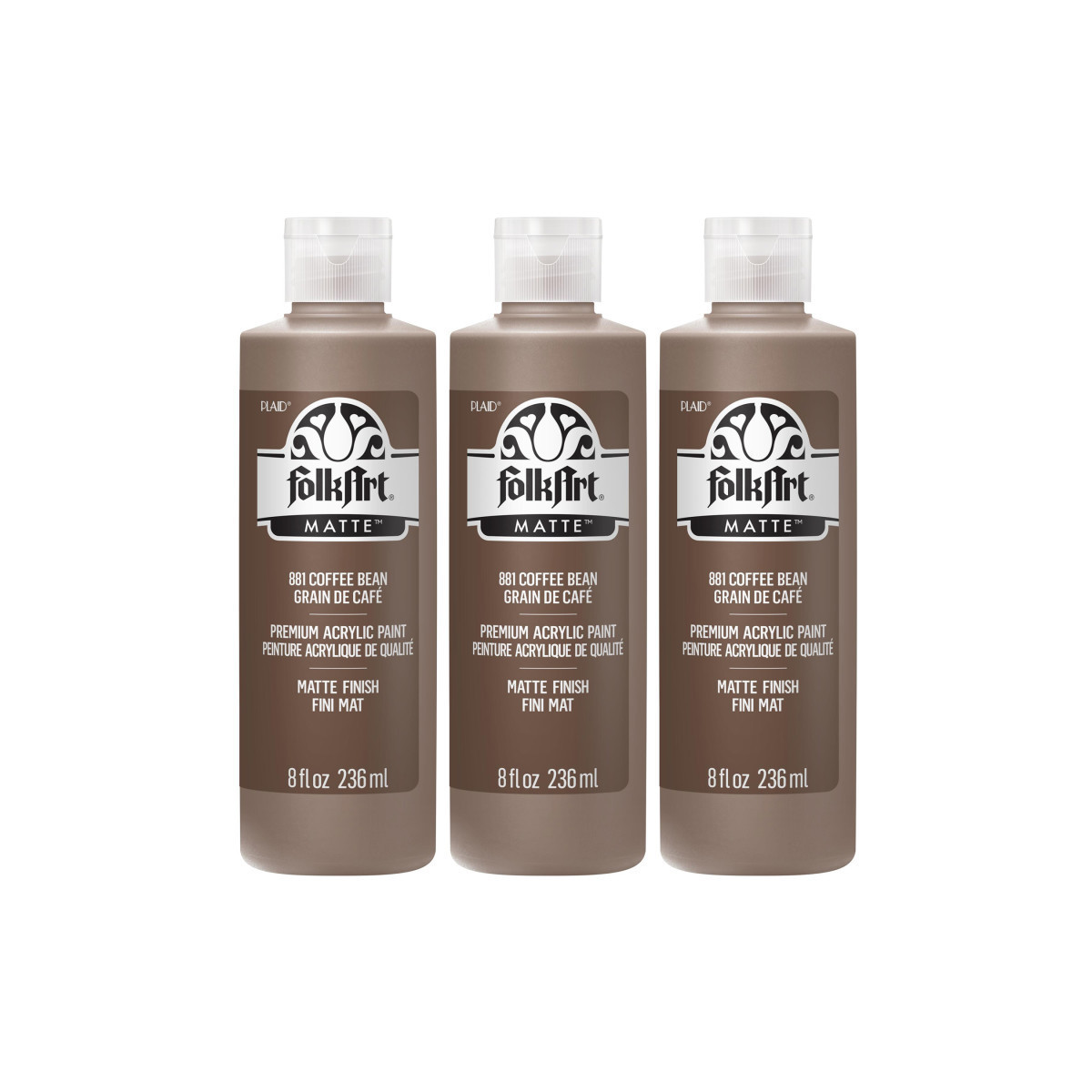 FolkArt Acrylic Paint is the artist-quality formula that crafters love for a variety of arts and crafts. With an expansive color palette, FolkArt Acrylic Paints offer a rich, creamy consistency for exceptional blending and shading with excellent coverage. FolkArt Acrylic Paints are must-have products for any crafter to have on hand for basecoating, stenciling, and more. Whether you are a novice or expert crafter, you'll love the versatility of this premium acrylic paint as part of your arts and crafts supplies. Developed for both stroke work painting and a variety of decorative craft activities, the FolkArt line of paints features amazing colors in a variety of formulas and finishes to inspire your creativity. Use these beautiful acrylic paints, with a matte finish, on a variety of surfaces such as wood, canvas, paper, Styrofoam, paper mache, and so much more. A preferred brand among crafters, painters, and artists, FolkArt Acrylic Paint is a staple in any collection of craft supplies! Sold as a pack of 3 bottles.