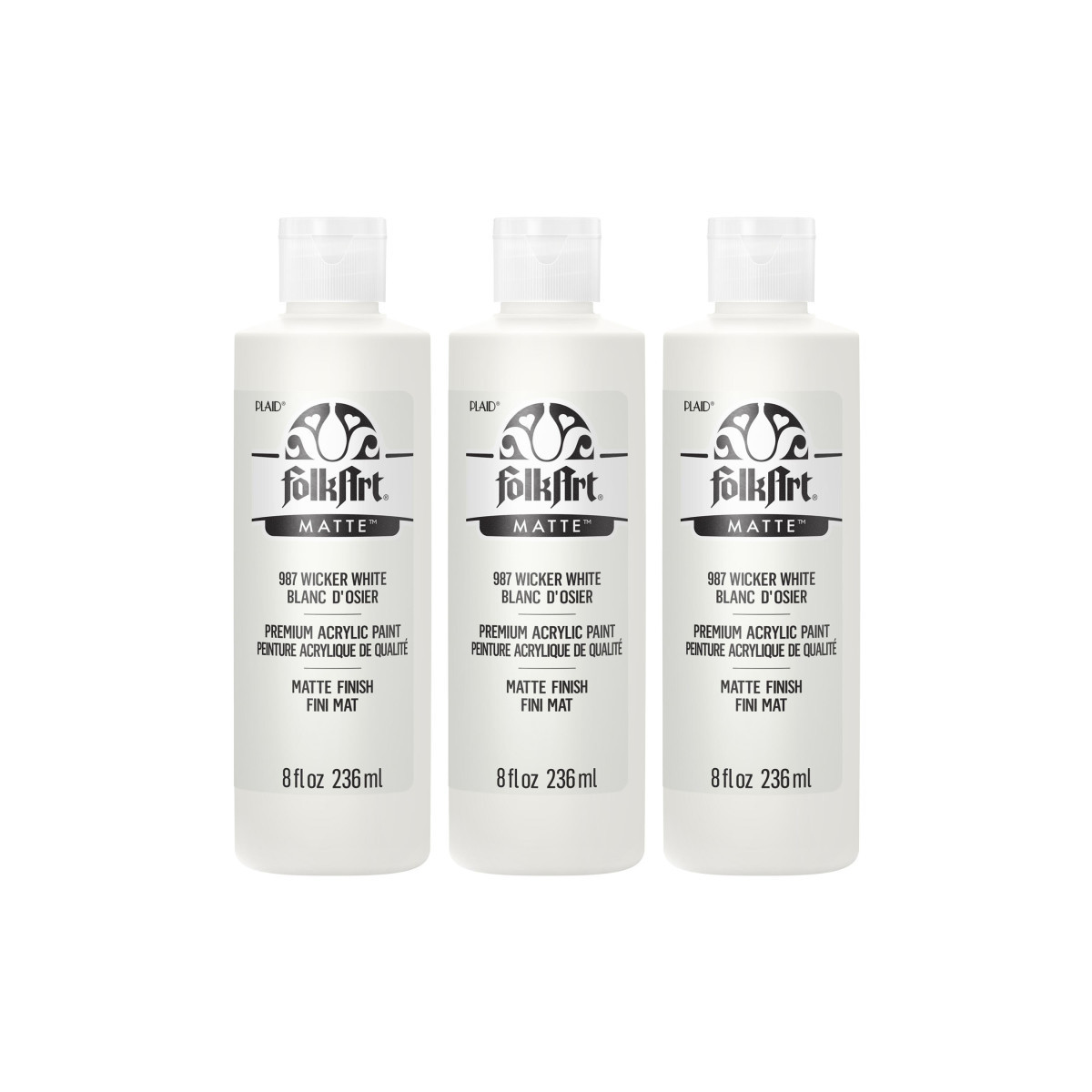 FolkArt Acrylic Paint Matte, 8oz., Wicker White, Pack of 3