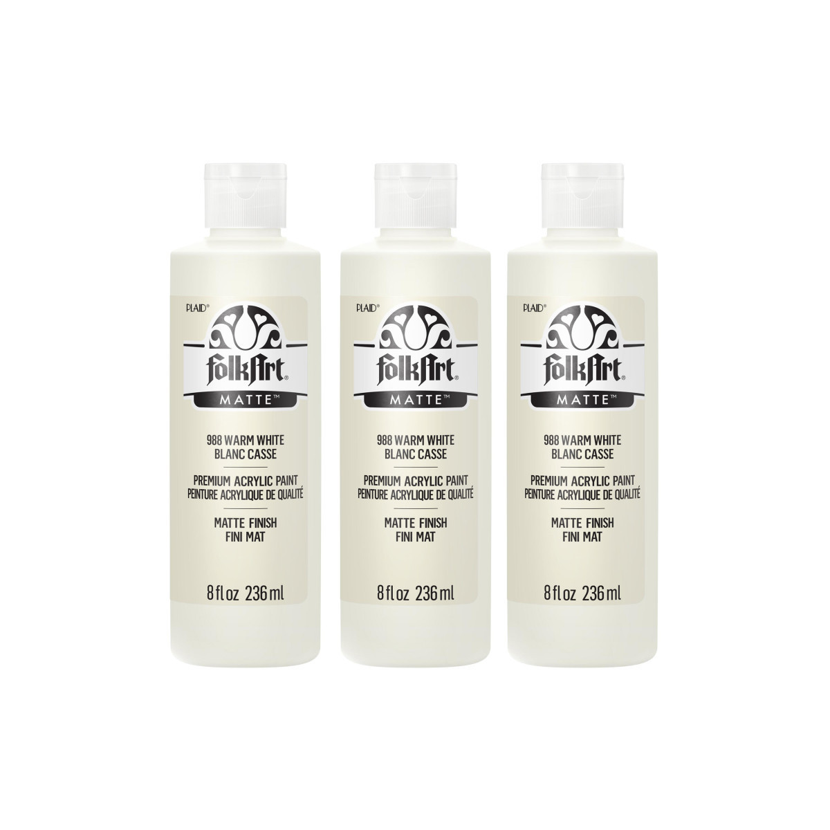 FolkArt Acrylic Paint is the artist-quality formula that crafters love for a variety of arts and crafts. With an expansive color palette, FolkArt Acrylic Paints offer a rich, creamy consistency for exceptional blending and shading with excellent coverage. FolkArt Acrylic Paints are must-have products for any crafter to have on hand for basecoating, stenciling, and more. Whether you are a novice or expert crafter, you'll love the versatility of this premium acrylic paint as part of your arts and crafts supplies. Developed for both stroke work painting and a variety of decorative craft activities, the FolkArt line of paints features amazing colors in a variety of formulas and finishes to inspire your creativity. Use these beautiful acrylic paints, with a matte finish, on a variety of surfaces such as wood, canvas, paper, Styrofoam, paper mache, and so much more. A preferred brand among crafters, painters, and artists, FolkArt Acrylic Paint is a staple in any collection of craft supplies! Sold as a pack of 3 bottles.