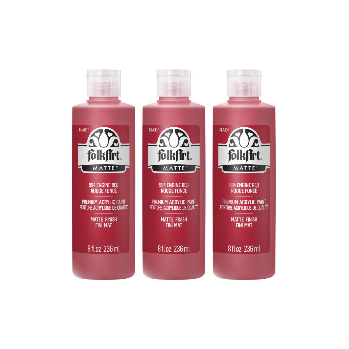 FolkArt Acrylic Paint Matte, 8oz., Engine Red, Pack of 3