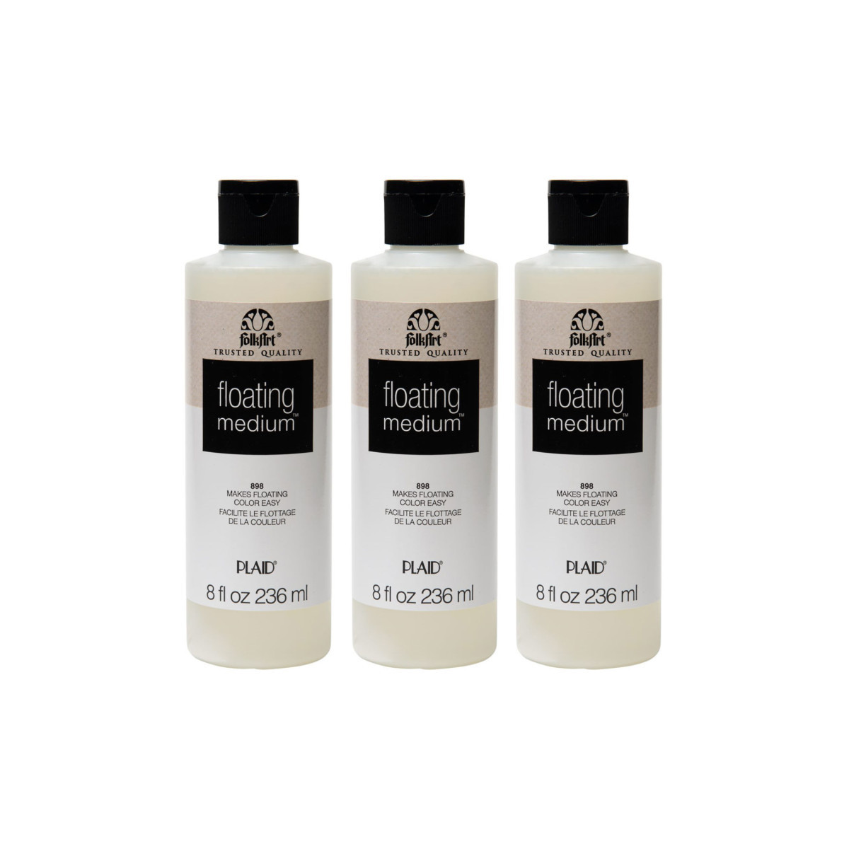 The FolkArt Floating Medium is specially formulated for floating colors with FolkArt Acrylic Paints. Create beautiful fluid paintings with the versatility of this handy medium. Watercolor painting is ideal for this medium. Easily glide your favorite FolkArt Acrylic Paint colors across your canvas to create unique shadows and highlights. FolkArt Floating Medium allows your colors to dry quickly without extenders and clean up is easy. Create beautiful pieces of artwork by floating an array of colors across your canvas with FolkArt Floating Medium in your craft supplies. Sold as a pack of 3 bottles.