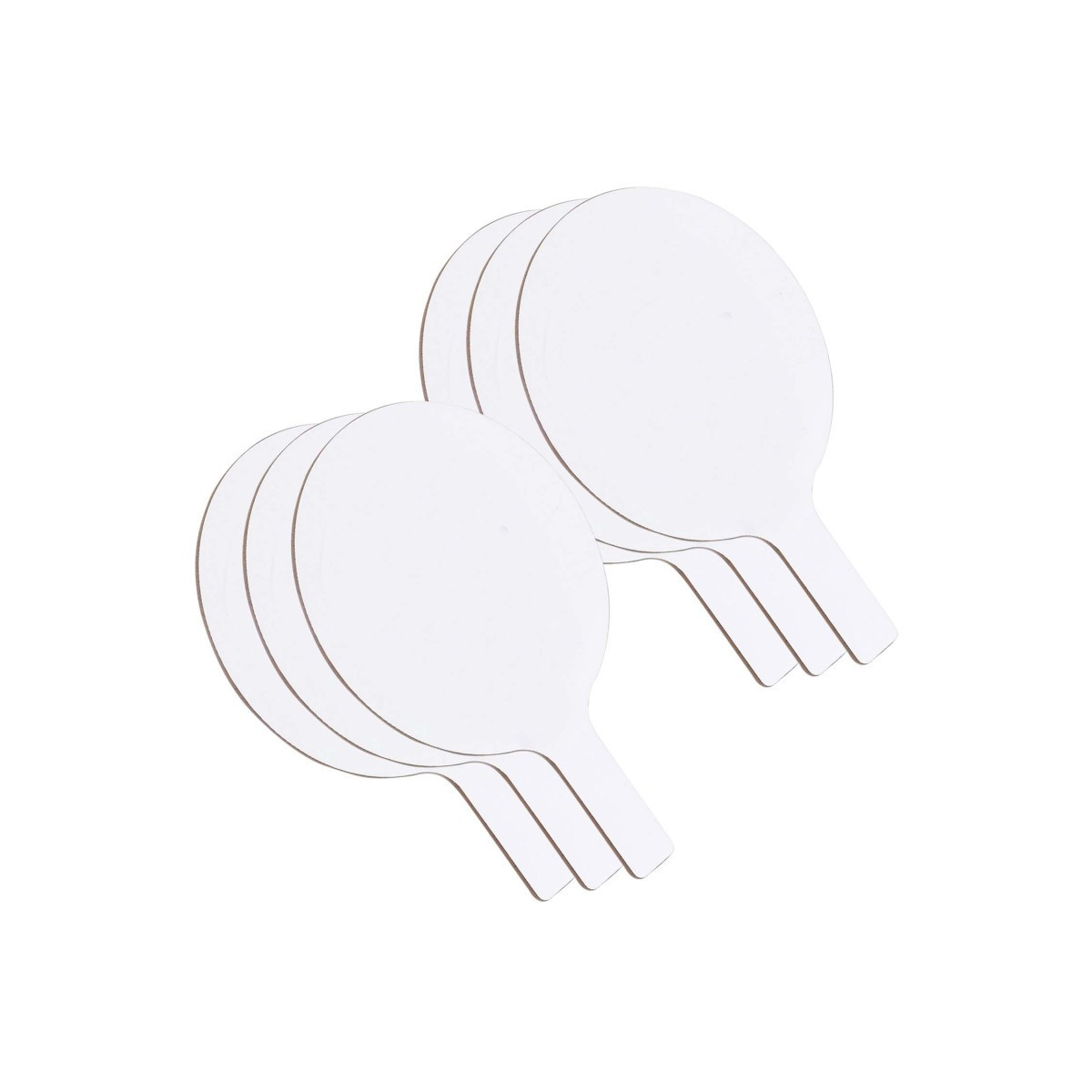 Quick and quiet whole class participation made easy with Dry Erase Answer Paddles. Great for review sessions, surveys, assessments, and more! Non-ghosting dry erase surface with a rounded shape, an easy grip handle and smooth edges. Hardboard backing is warp and chip resistant. Measures 7" wide x 12" high x 0.25 deep". Made in USA. Pack of 6 Dry Erase Paddles.