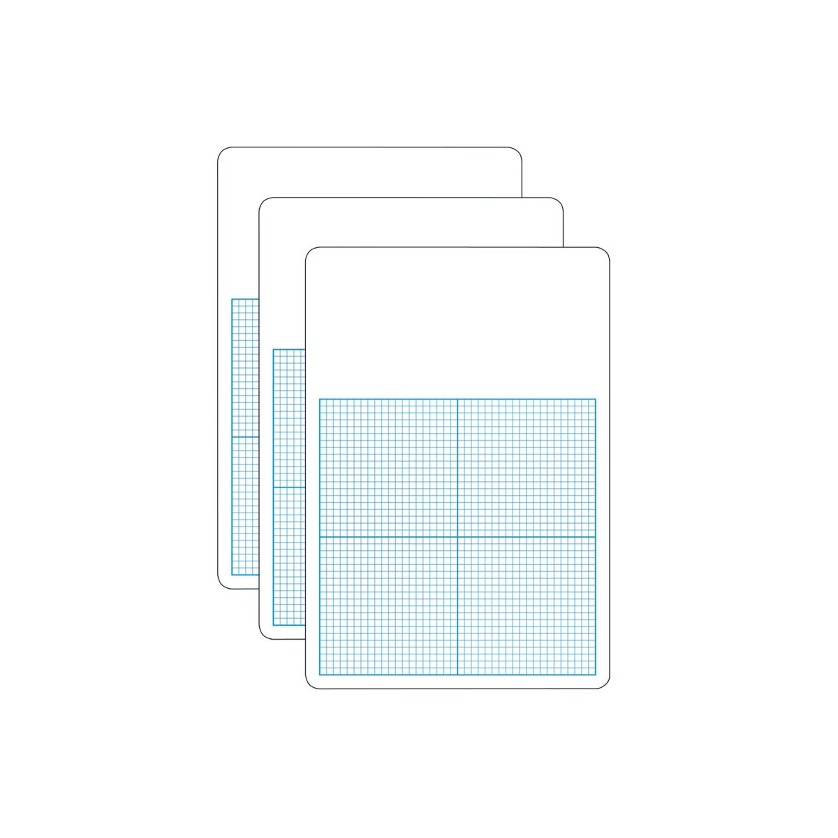Graphing practice on dry erase boards saves paper! Bold lines separate board into quadrants each 20 squares by 20 squares; total grid is 40 squares by 40 squares. Individual squares measure 1/4" x 1/4". Plain work space is 11" x 5-1/4". Boards feature non-ghosting dry erase surface with rounded corners and smooth edges for safety and comfort. Durable hardboard backing is warp and chip resistant. Measures 11" x 16" x 0.125". Sold as a pack of 3 boards.