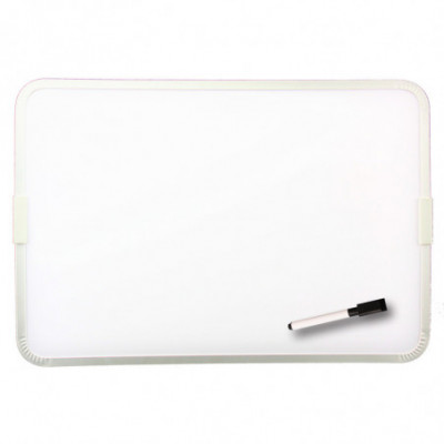 Both dry erase and magnetic, this board is perfect for use in a classroom, at home, or at the office. Features a magnetic and non-magnetic side for use. Comes with a magnetic dry-erase marker pen with cap eraser. Measures 12" x 17.5".