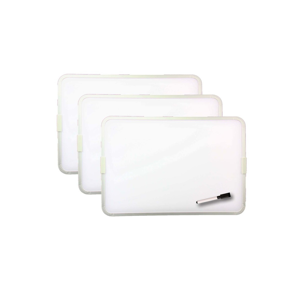 Includes magnetic dry-erase marker pen with cap eraser for each board