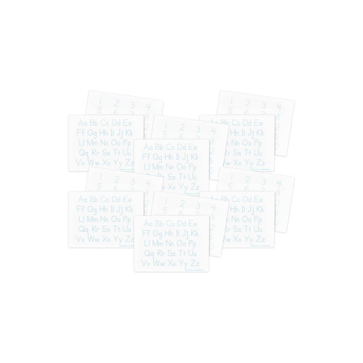 Enhance your classroom learning experience with our dry erase learning mats. The two-sided Learning Letters and Numbers Mats offer a dynamic surface for early learners. These 9" x 12" mats feature vibrant dotted blue letters on one side and dotted numbers 1-20 on the reverse. The mats boast a high-quality write-and-wipe surface with smooth rounded edges. The set of 12 mats provides an economical and reusable solution, making them the perfect alternative to traditional hardbacked boards.