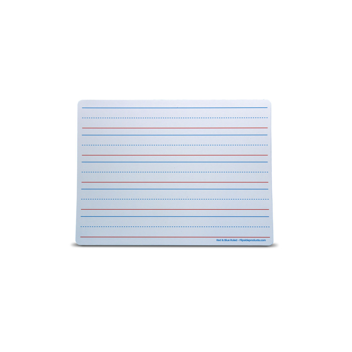 Magnetic, Two-Sided Red & Blue Ruled Dry Erase Learning Mats are great for teaching and practicing fundamentals at the early learner stage. The bright white sheets contain 5 sets of blue headlines and broken mid-lines plus, a red baseline format. Each line set measures 1 1/8" with 3/8" of blank descender space between sets. The back side is plain white, dry erase with a blue border. Both sides of the learning mats are magnetic receptive allowing for use with magnetic manipulatives. The mats feature a high-quality, non-ghosting write-and-wipe surface with smooth, rounded edges and corners. Each sheet measures 9" x 12". Each pack includes 12 individual mats.