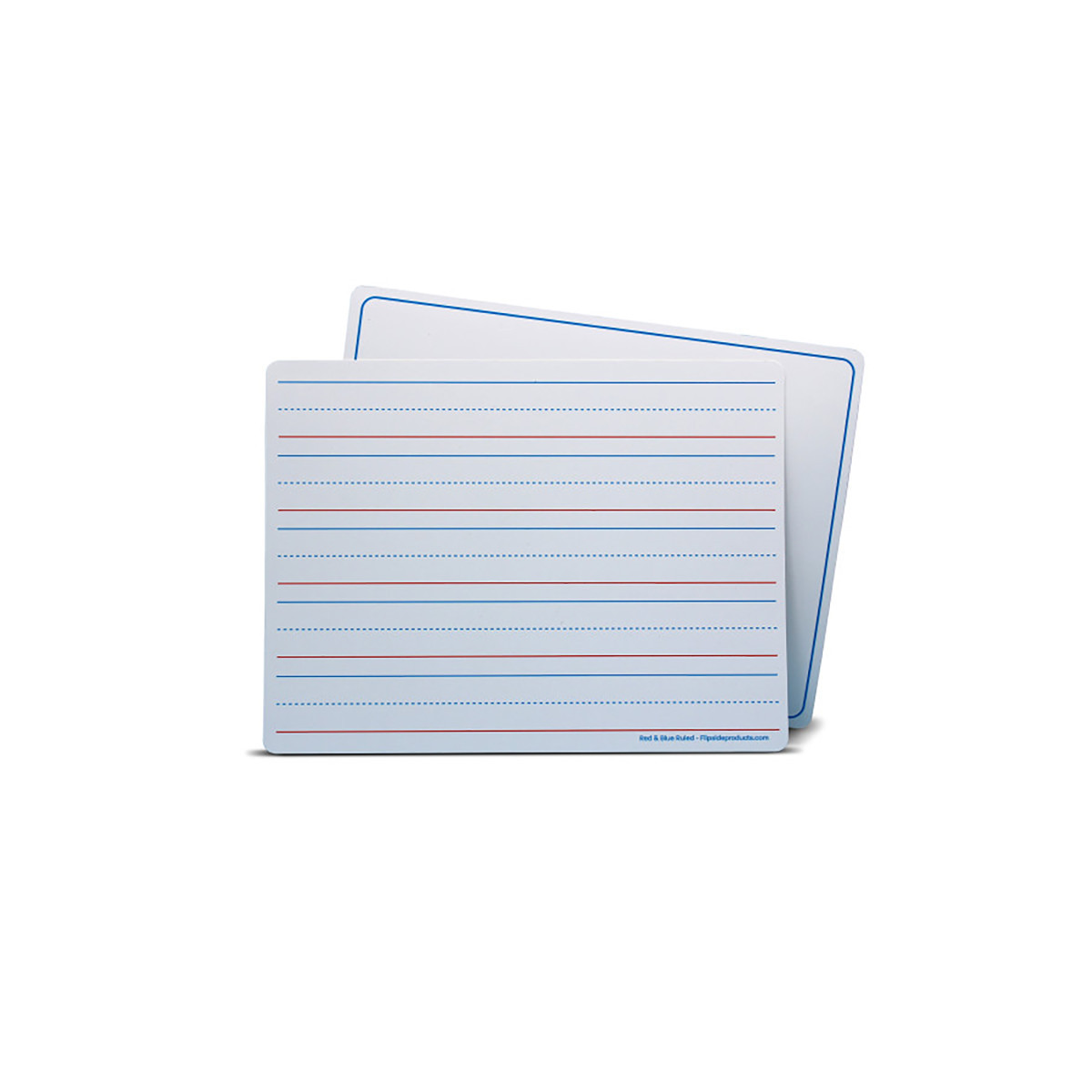 Magnetic, Two-Sided Red & Blue Ruled Dry Erase Learning Mats are great for teaching and practicing fundamentals at the early learner stage. The bright white sheets contain 5 sets of blue headlines and broken mid-lines plus, a red baseline format. Each line set measures 1 1/8" with 3/8" of blank descender space between sets. The back side is plain white, dry erase with a blue border. Both sides of the learning mats are magnetic receptive allowing for use with magnetic manipulatives. The mats feature a high-quality, non-ghosting write-and-wipe surface with smooth, rounded edges and corners. Each sheet measures 9" x 12". Each pack includes 48 individual mats.