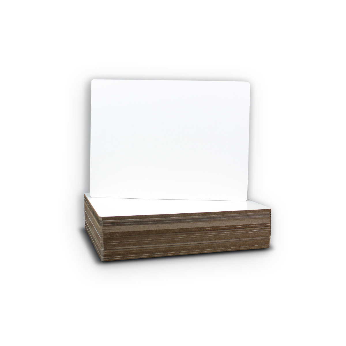 Economical, unframed lap board with a plain dry erase surface is ideal for doodling, math or handwriting practice and more! Quality write and wipe surface will not ghost. Hardboard backing will not warp or chip. Nipped corners and smooth edges for comfort. Class pack of 24.