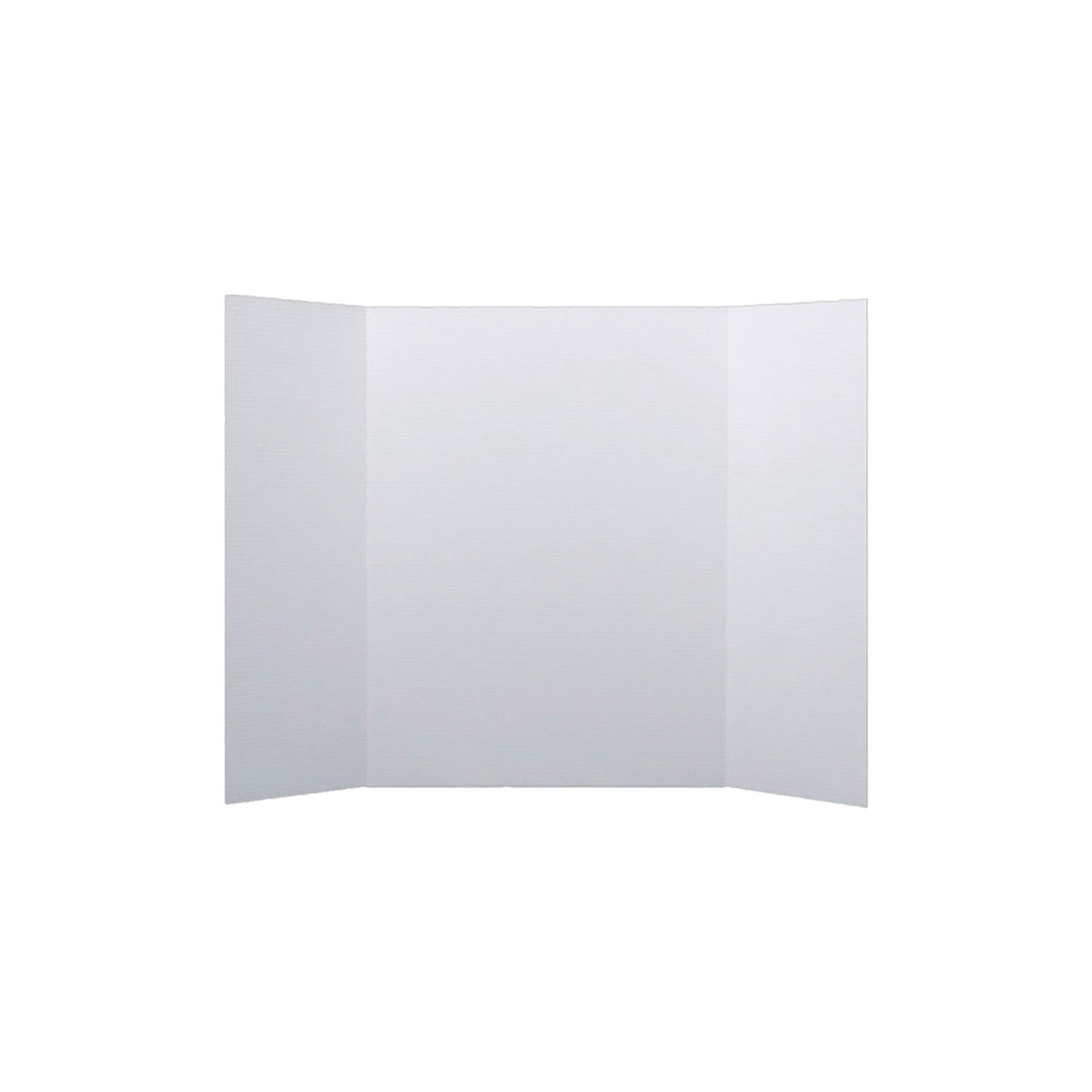Our project display boards allow you to customize and easily create a lasting impression. The durable, smooth, bright surface has a slight glossy finish that easily allows markers, glue, paint and adhesive. These project boards are great for science fairs, presentations, picture displays, school projects and tabletop exhibits. You can easily transport your project board because of the overlapping side panels. Our project boards have color on one side and natural brown kraft on the back. Made from 1-ply corrugated paper that is 100% recyclable. Project boards measure 36" H x 48" W. Side panels measure 36" H x 12.75" W. Center panel measures 36" H x 22.5". Pack of 10 white boards.
