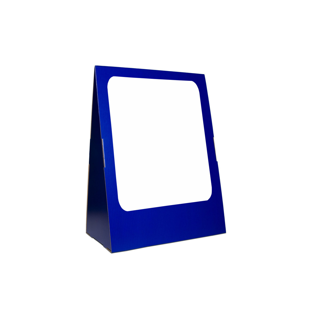 Lightweight and portable blue corrugated stand holds 24" x 32" and 24" x 16" spiral bound chart tablets