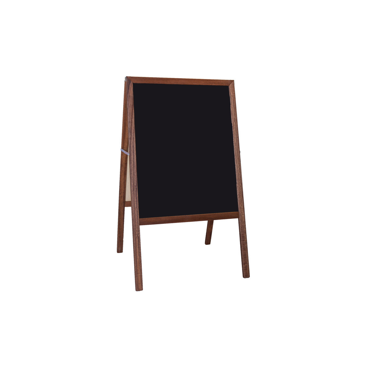 Stained Black Chalkboard Marquee Easel is ideal for use as signage and sidewalk easels. Great for announcements, sales and specials, menus, and much more. Easels fold flat for easy storage. The stained hardwood, two-sided easel features a black chalkboard on each side. Measures 42" H X 24" W.