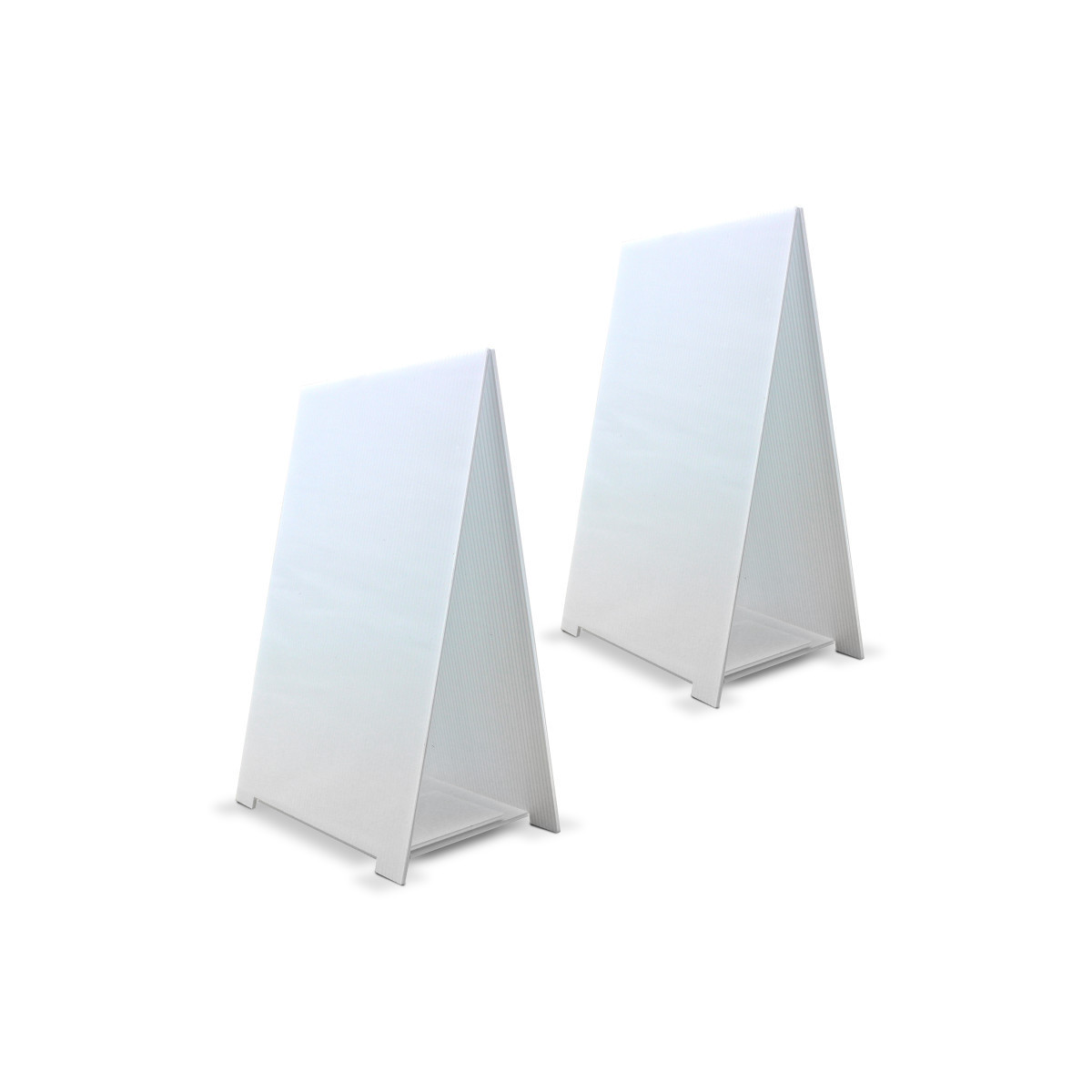 Our versatile tabletop corrugated plastic dry erase easel is the ideal solution for showcasing announcements, menus, and messages with ease. Crafted for durability and convenience, this easel is both sturdy and lightweight, providing a compact display that effortlessly fits onto any desktop setting. Made from 100% recycled and recyclable corrugated plastic, it aligns with eco-friendly values. The thoughtful design makes it easy to transport and the ability to fold flat for efficient storage. With dimensions of 11"H x 17"W x 8"D, this easel strikes the perfect balance between functionality and space-saving necessities. Pack of 2.