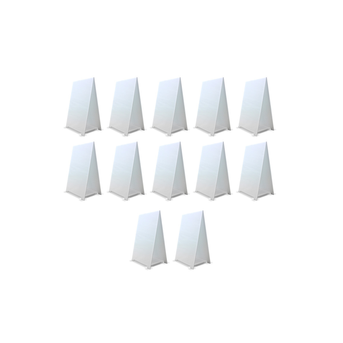 Our versatile tabletop corrugated plastic dry erase easel is the ideal solution for showcasing announcements, menus, and messages with ease. Crafted for durability and convenience, this easel is both sturdy and lightweight, providing a compact display that effortlessly fits onto any desktop setting. Made from 100% recycled and recyclable corrugated plastic, it aligns with eco-friendly values. The thoughtful design makes it easy to transport and the ability to fold flat for efficient storage. With dimensions of 11"H x 17"W x 8"D, this easel strikes the perfect balance between functionality and space-saving necessities. Pack of 12.