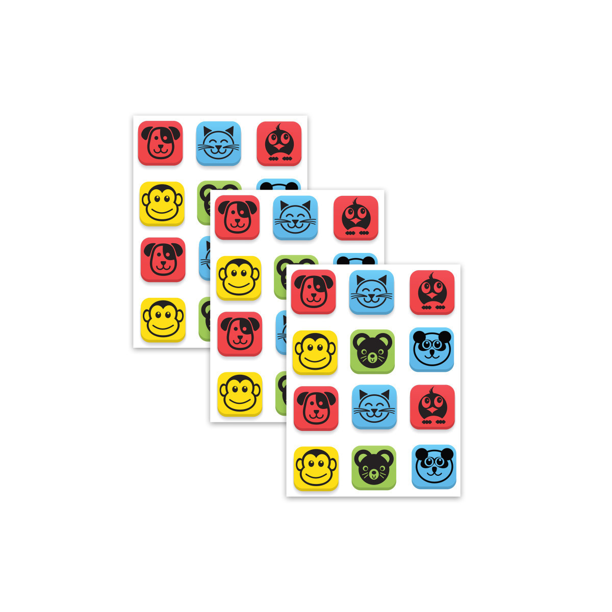 Whimsically-designed magnetic erasers are perfect for student-size whiteboards and chalkboards. Chunky, 2" x 2" size is perfect for young hands. Set includes two each of six animal designs: red dog, blue cat, red bird, yellow monkey, green mouse, blue bear. Dense EVA foam backing with flocked, dust-attracting fabric eraser surface will stick to any magnetic-receptive surface. Erasers measure 2" wide x 2" high x 0.875" thick. Each set includes 12 erasers. Sold as 3 sets for a total of 36 erasers.