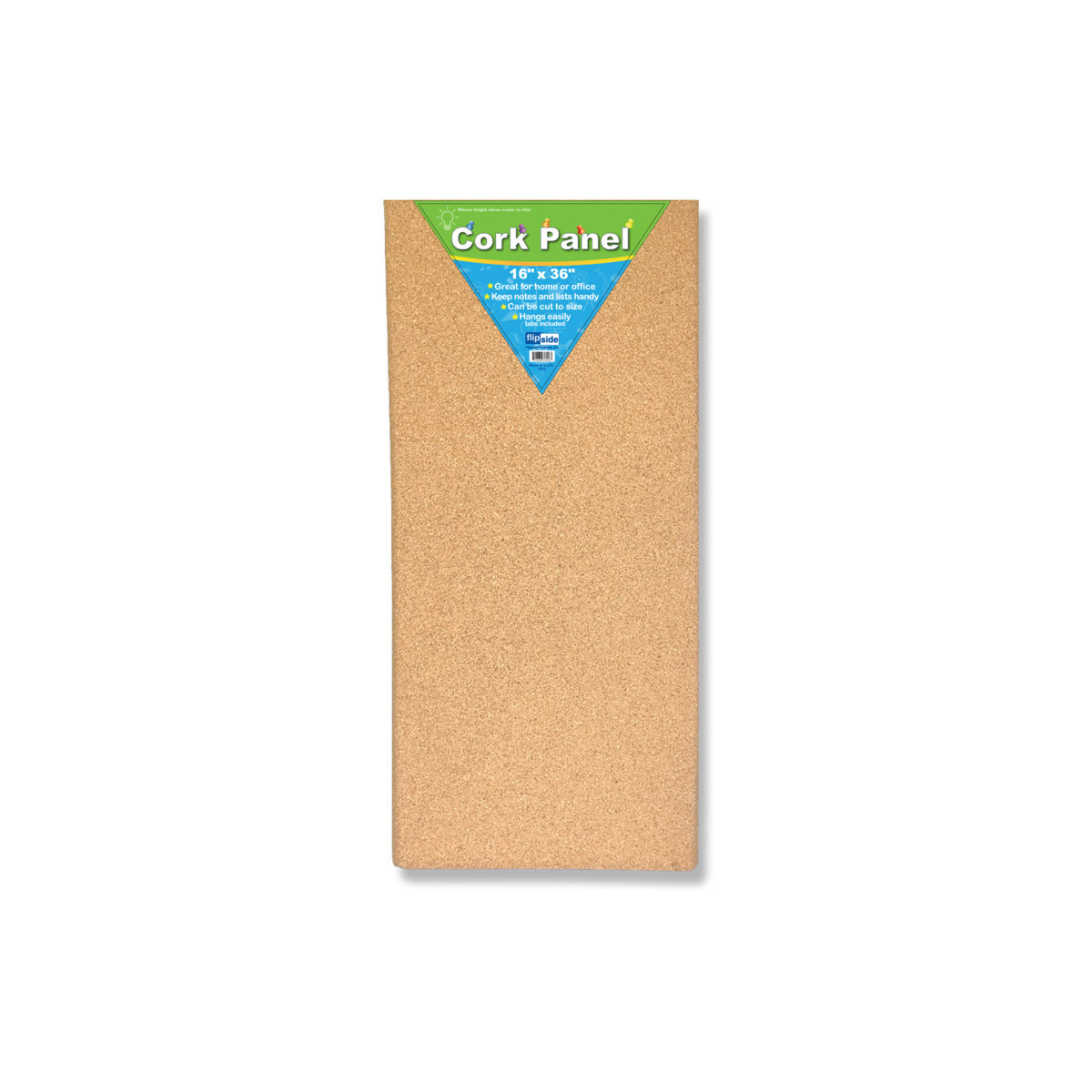 Cork panels provide easy access to the important stuff of everyday living! Self-healing natural cork holds notes, lists, and reminders of all sorts. Natural cork lends a sophisticated look to your message space. Cork wraps the long edges which are rounded to add style. Can be cut to size. Hangs easily with adhesive tabs included. Board measures 16" x 36" x 0.5".