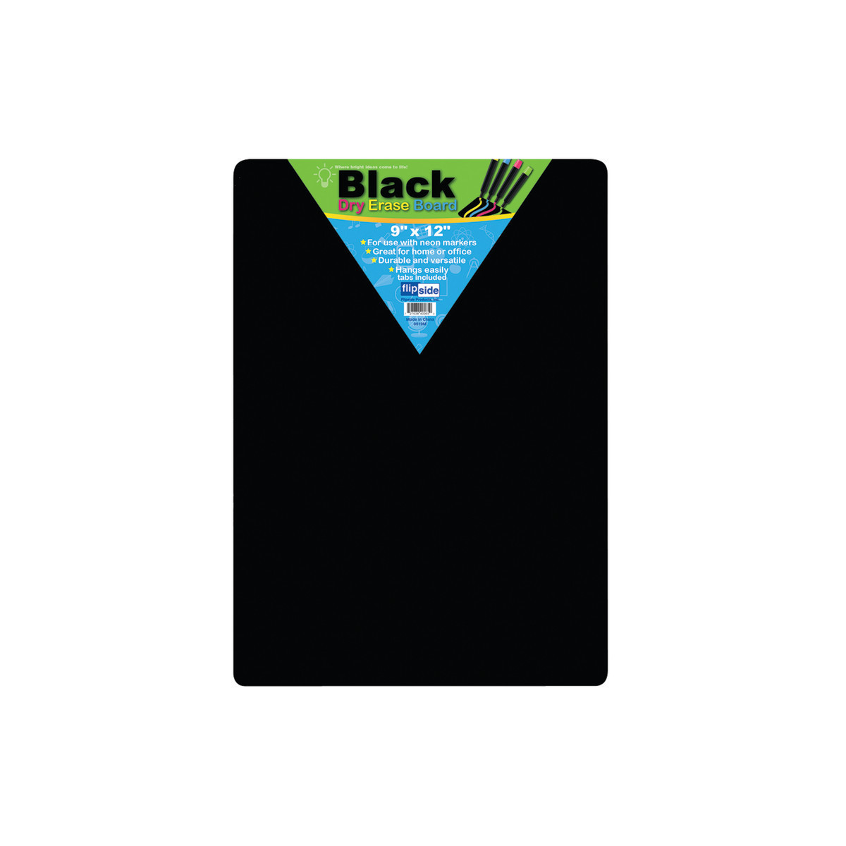 Use neon dry erase markers on this economical, unframed lap board with a plain black dry erase surface for doodling, math or handwriting practice and more! Quality write-and-wipe surface is non-ghosting. Hardboard backing is warp and chip resistant. Rounded corners and smooth edges for comfort and safety. Adhesive squares included for mounting.Measures 9" x 12" x 0.125"