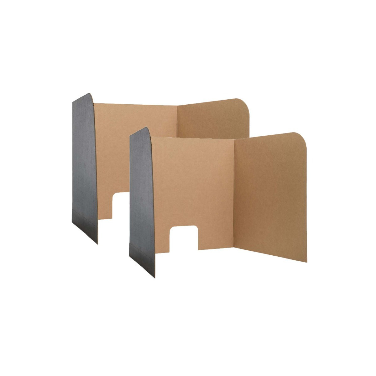 Create instant testing centers on desktops or tables to provide privacy, encourage students to stay focused, and curb wandering eyes. Sized to accommodate desktop monitors, laptops, or tablets with a unique design featuring tabs to secure the screen to the table or to each other. Lightweight and sturdy corrugated board is kraft on the interior and black on the exterior. Generous 6" x 2.5" cord cutout allows easy use with multimedia equipment. Assembly instructions included. Measure 62" wide x 22.5" high x 0.125" overall with middle panel 22" wide x 22.5" high and side panels 20" wide x 22.5" high. Each pack includes 3 privacy screens. Sold as 2 packs for a total of 6 privacy screens.