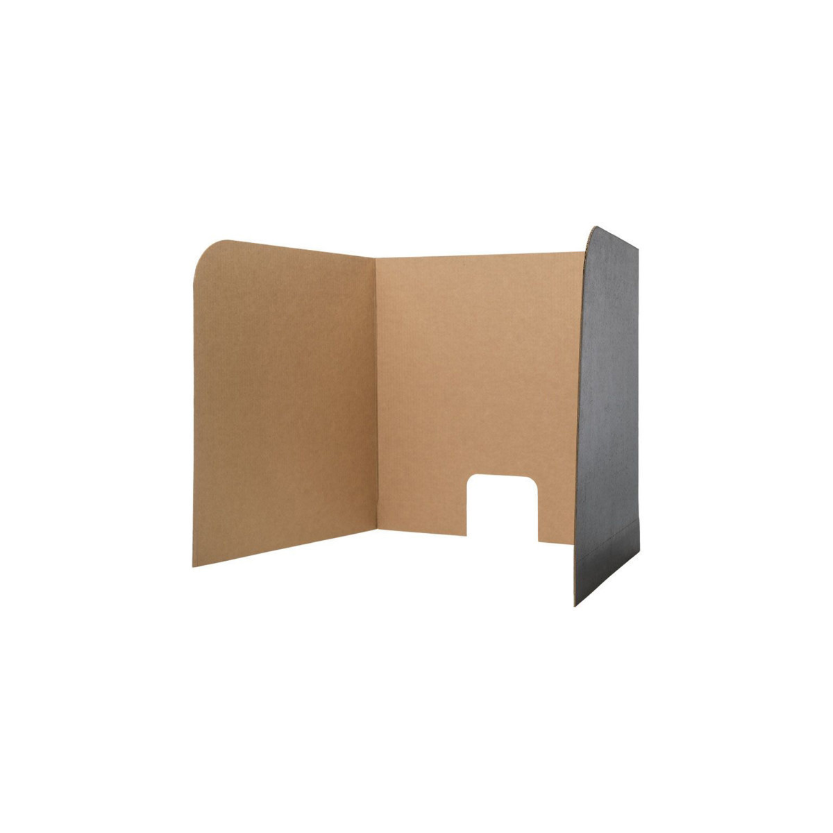 Create instant testing centers on desktop or tables to provide privacy, encourage students to stay focused and curb wandering eyes. Sized to accommodate desktop monitors, laptops or tablets with a unique design featuring tabs to secure the screen to the table or to each other. Lightweight and sturdy corrugated board is kraft on the interior and black on the exterior. Generous 6" x 2.5" cord cutout allows easy use with multimedia equipment. Assembly instructions included. Measure 62" wide x 22.5" high x 0.125" overall with middle panel 22" wide x 22.5" high and side panels 20" wide x 22.5" high. Includes 12 privacy screens. Made in USA.
