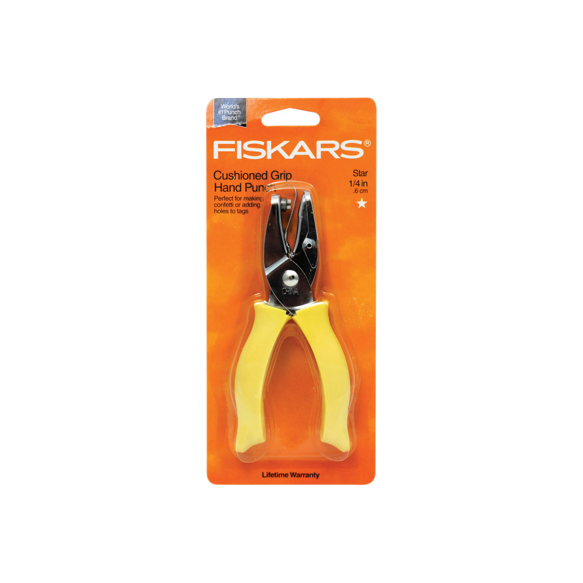 Features: Traditional design is ideal for punching simple shapes in craft projects for both functional and decorative purposes. Cushioned grip provides comfortable use. Confetti catcher holds all clippings. Color-coded handle makes it easy to find the right punch in your collection. For best results, use on 65-lb. cardstock and lower. Lifetime warranty