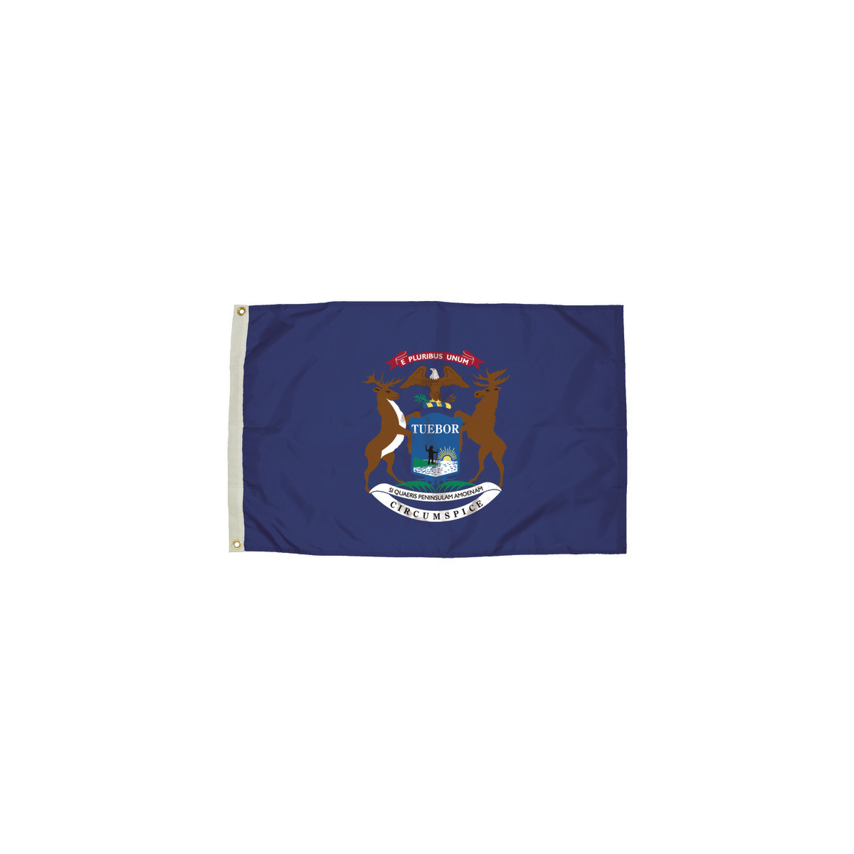 Representation of current state or territory flag in a full range of bright, durable colors. Durawavez nylon (digital dyed) meets the most demanding commercial and residential uses. Each outdoor flag measures 3' x 5', and is finished with heading and brass plated grommets.