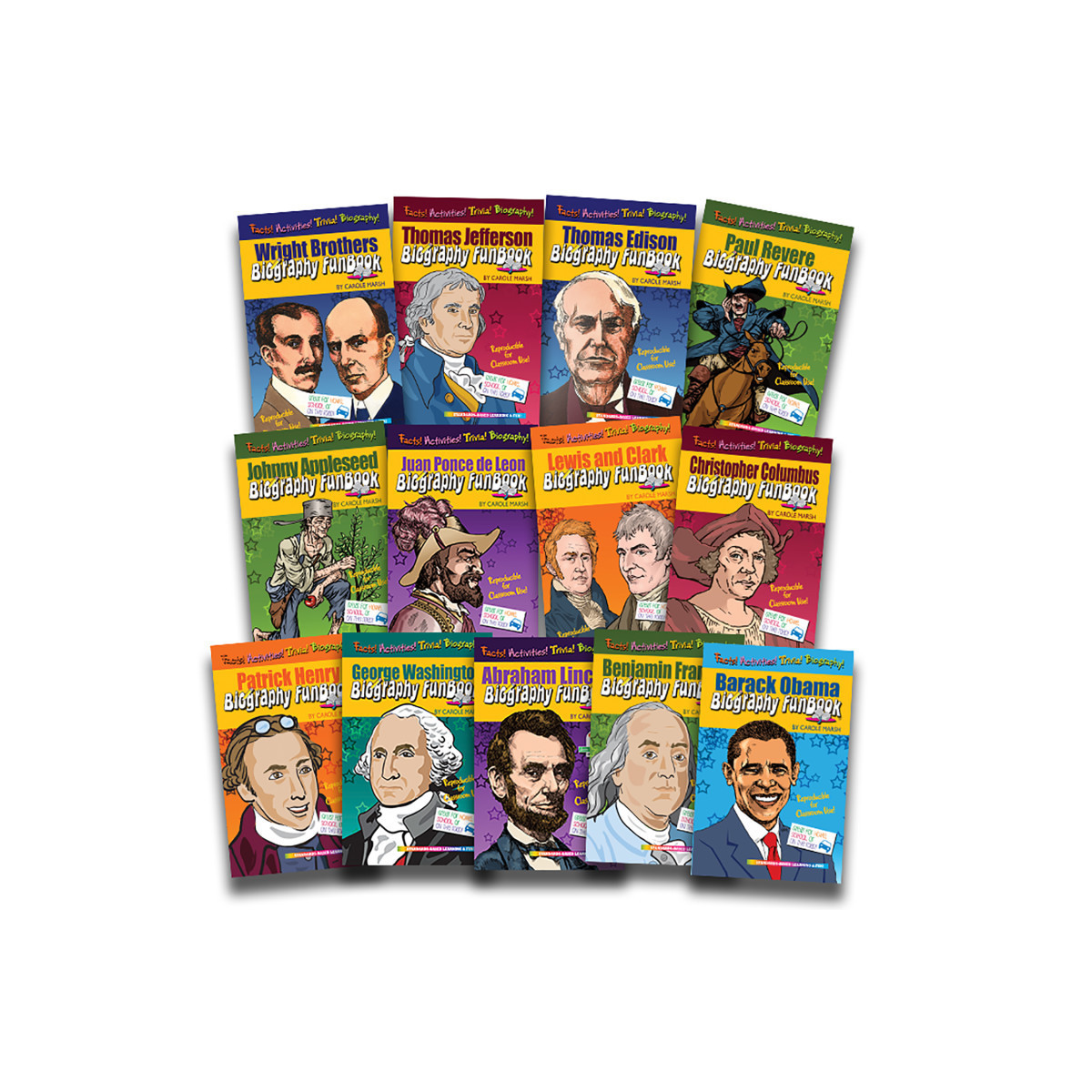 This series consists of Biography FunBooks that are fresh and exciting biographies filled with fun activities. They provide an overview of each person's life and touch on their childhood, education, family, personal obstacles and key accomplishments. The people selected for this set are the MUST READS that all students are required to learn. These new FunBooks are the best of both worlds: a fun read and reinforcing activities that cover all state and national standards.