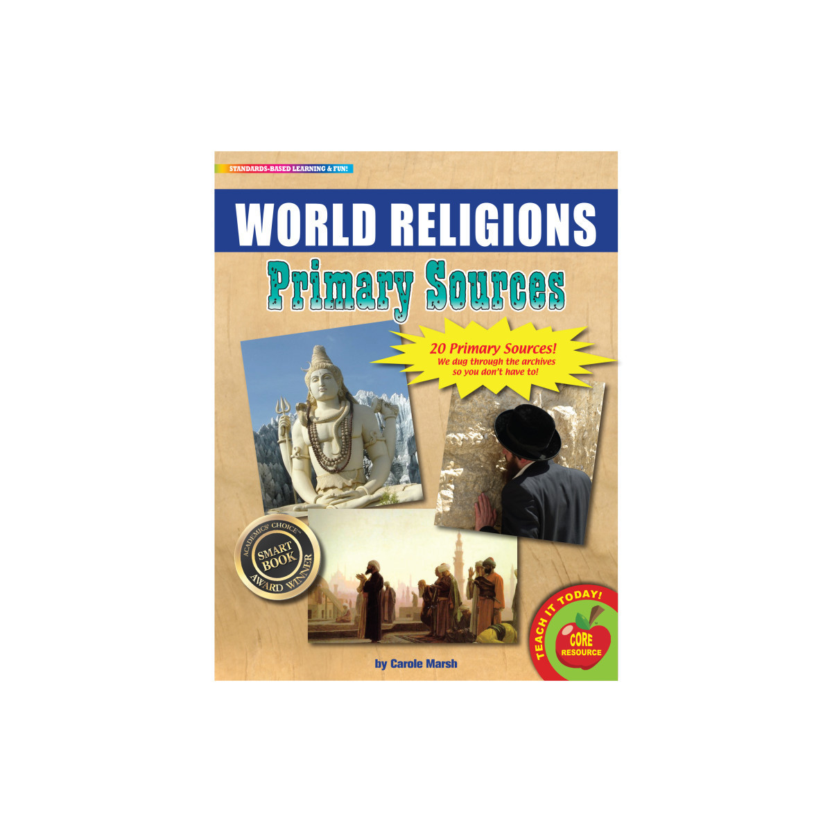 The Primary Sources series has won the Academics' Choice Awards/ Smart Book Award in recognition of mind-building excellence. The World Religions Primary Sources is a collection of 20 primary source documents that provide and overview of religious beliefs. Primary Sources packs include historical documents, maps, photographs, political cartoons, lithographs, diagrams, letters in a mix of color and black-and-white, and sepia finishes. Each primary resource is printed on sturdy 8.5" X 11" cardstock.