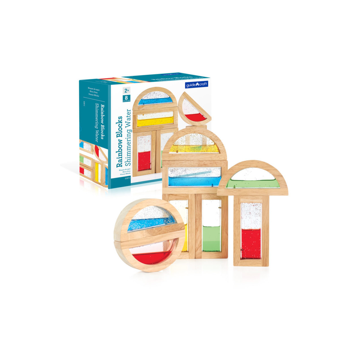 A great addition to the block play family. Smooth hardwood frames with acrylic windows; choose from shimmering water, sand or crystal bead interiors. Sized to standard unit block measurements. Eight blocks per package: 4 rectangle and 4 half moon shapes. Features plexi inner with colored liquid.