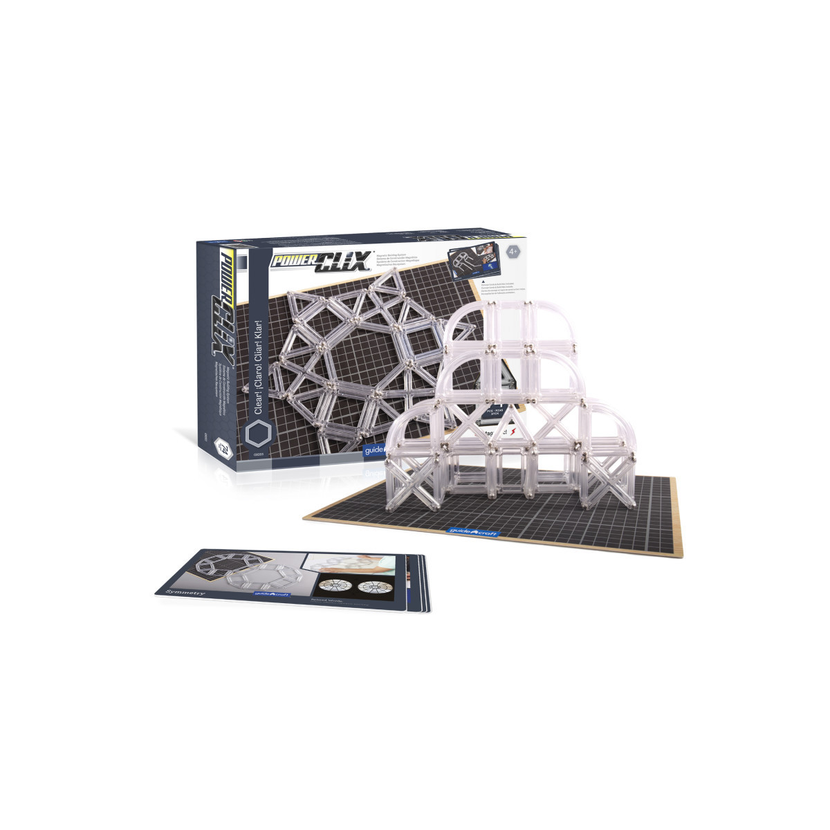 PowerClix Clear is the ultimate architectural building kit. With clear frame pieces that reveal the connecting magnets and mechanics of each piece, children can focus on the structure of their creations and the building pieces they use. In keeping with STEM toy attributes, PowerClix magnetic building toys encourage children to think like engineers while having fun. Children can build unlimited 3D forms by visualizing the underlying design structure of an object, then creating a wireframe model of it using magnetic frames of geometric shapes. PowerClix Clear pieces are designed to integrate flawlessly with all PowerClix system sets. Organize and store PowerClix pieces easily with the new metal plate built right into the packaging. The metal plate may be used as a building base as well. Ages 4+