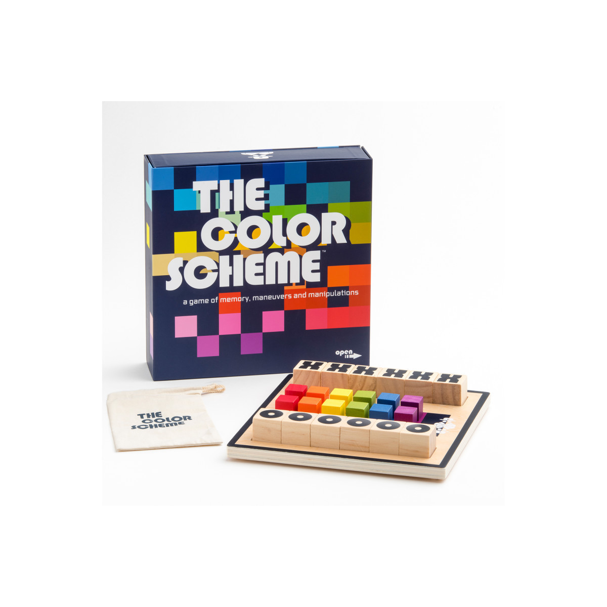 The Color Scheme is a game of memory, maneuvers and manipulations. In this 2-player game each contestant attempts to be the first to decipher a color code that was created by their opponent. A sharp focus is essential for each successful move. Don't be distracted by the shifting of cubes. Your opponent is scheming to outwit you. You must stay one step ahead of them to win!