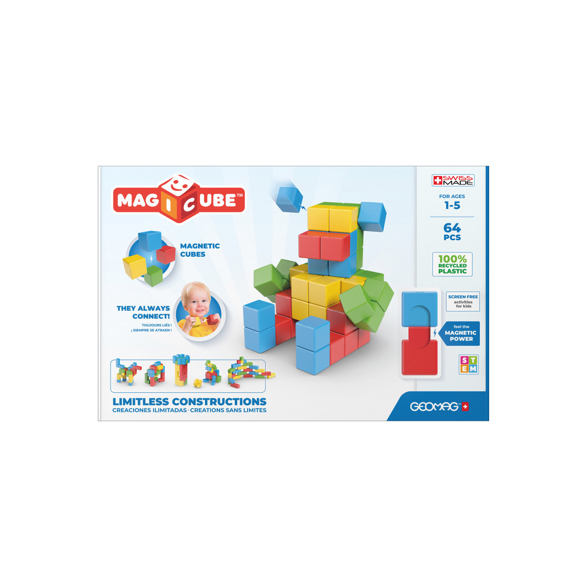 ASSURING SAFE PLAY WITH PUZZLE BUILDING CUBES: Geomag manufacturing complies with the most rigorous European and International safety standards. This set has 64 magnetic blocks with many different building ideas. Mix and match for educational discovery! Instruction booklet included in every box.