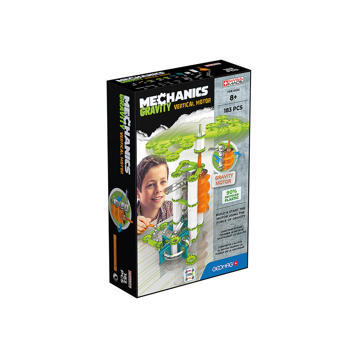 Made with recycled plastic, Geomag Mechanics Gravity Vertical Motor Recycled 183 piece construction platform combines the force of magnetism with mechanical construction. Geomag Mechanics Gravity Vertical Motor Recycled 183 pieces stimulate children's creativity, inventiveness and a hands-on approach to problem-solving and will introduce the concepts of an interactive gravity moto. In addition to magnetic rods and steel spheres, Geomag Mechanics Gravity adds mechanical elements within the construction platform that allows for expanded play possibilities. STEM.org authenticated toy that helps in the development of creativity, fine motor skills in addition to stimulating imaginative play and curiosity through the science of magnetic construction.