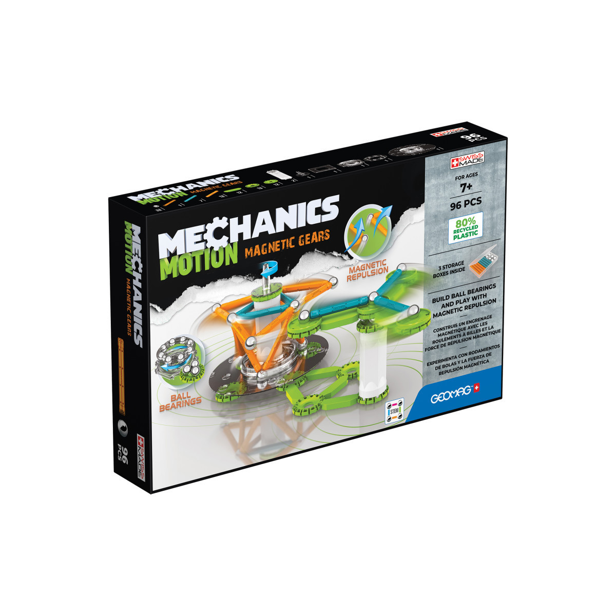 Made with recycled plastic, Geomag Mechanics Motion Gears Recycled 96 pieces combine the force of magnetism with mechanical construction. Geomag Mechanics Motion Compass 96 pieces stimulate children's creativity, inventiveness and a hands-on approach to problem-solving. In addition to magnetic rods and steel spheres, Geomag Mechanics adds mechanical elements within the construction platform that allows for expanded play possibilities. Structures rotate by triggering chain reactions using magnetic attraction and repulsion. STEM.org authenticated toy that helps in the development of creativity, fine motor skills in addition to stimulating imaginative play and curiosity through the science of magnetic construction.