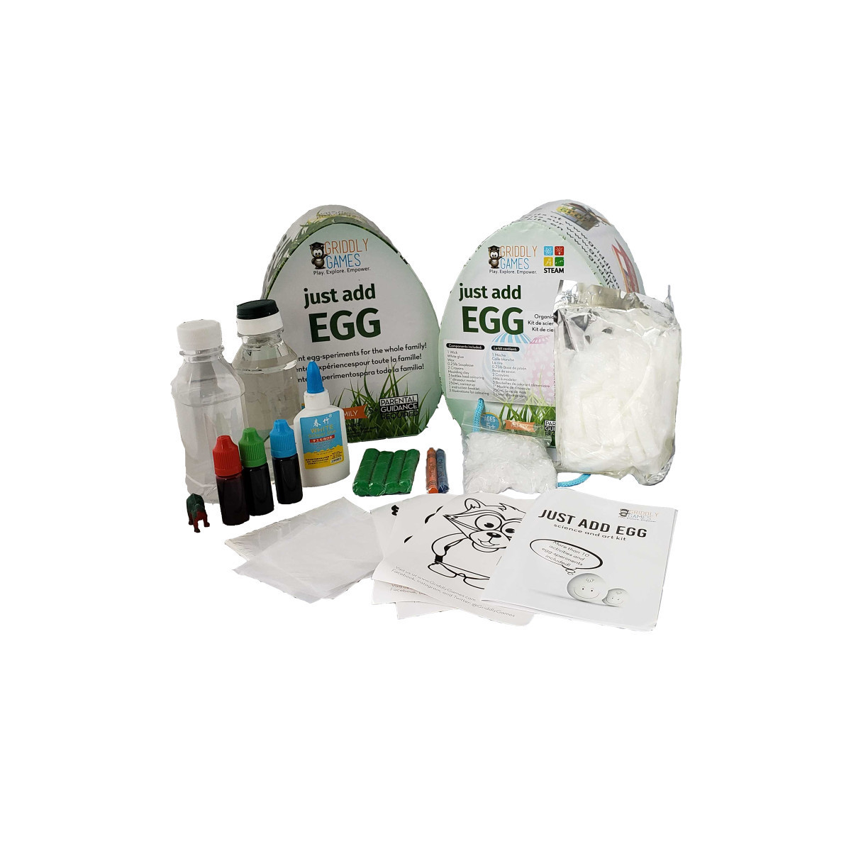 Just Add Egg makes science and art at home easy by using supplies you already have. This kit comes loaded with everything you need for at-home science and art experiments, all you need to do is add the missing ingredient. This bio-organic STEAM kit offers egg-citing activities for young artists and scientists to explore! More than 10 science and art activities including Egg Shell Dying, Egg Shell Geode and so much more! Discover chemical reactions, Experiments with Pressure Difference, and the Study Of Membranes. This kit features instructions in English, Spanish and French. Designed for kids ages 5 and up.