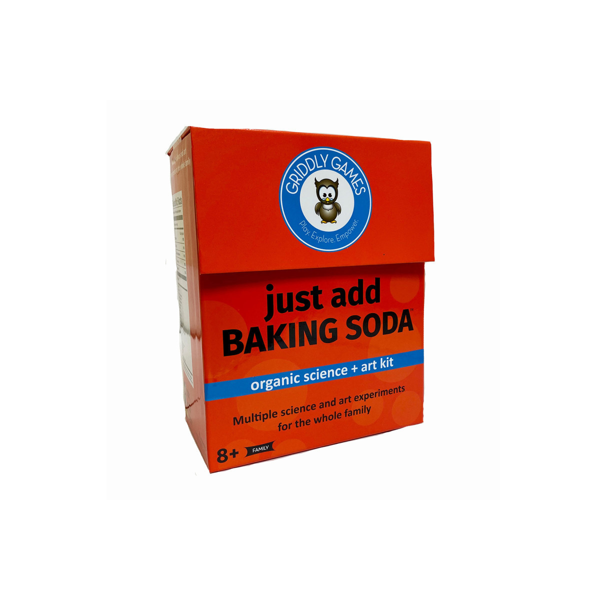 Just Add Baking Soda makes science and art at home easy by using supplies you already have. This kit comes loaded with everything you need for at-home science and art experiments, all you need to do is add the missing ingredient. Future scientists and artists agree that this kit is explosive! More than 20 science and art activities including Bath Bombs, Ornaments, Baking Soda Volcano and so much more! Discover chemical reactions, states of matter, and alkaline. This kit features instructions in English, Spanish and French. Designed for kids ages 8 and up.