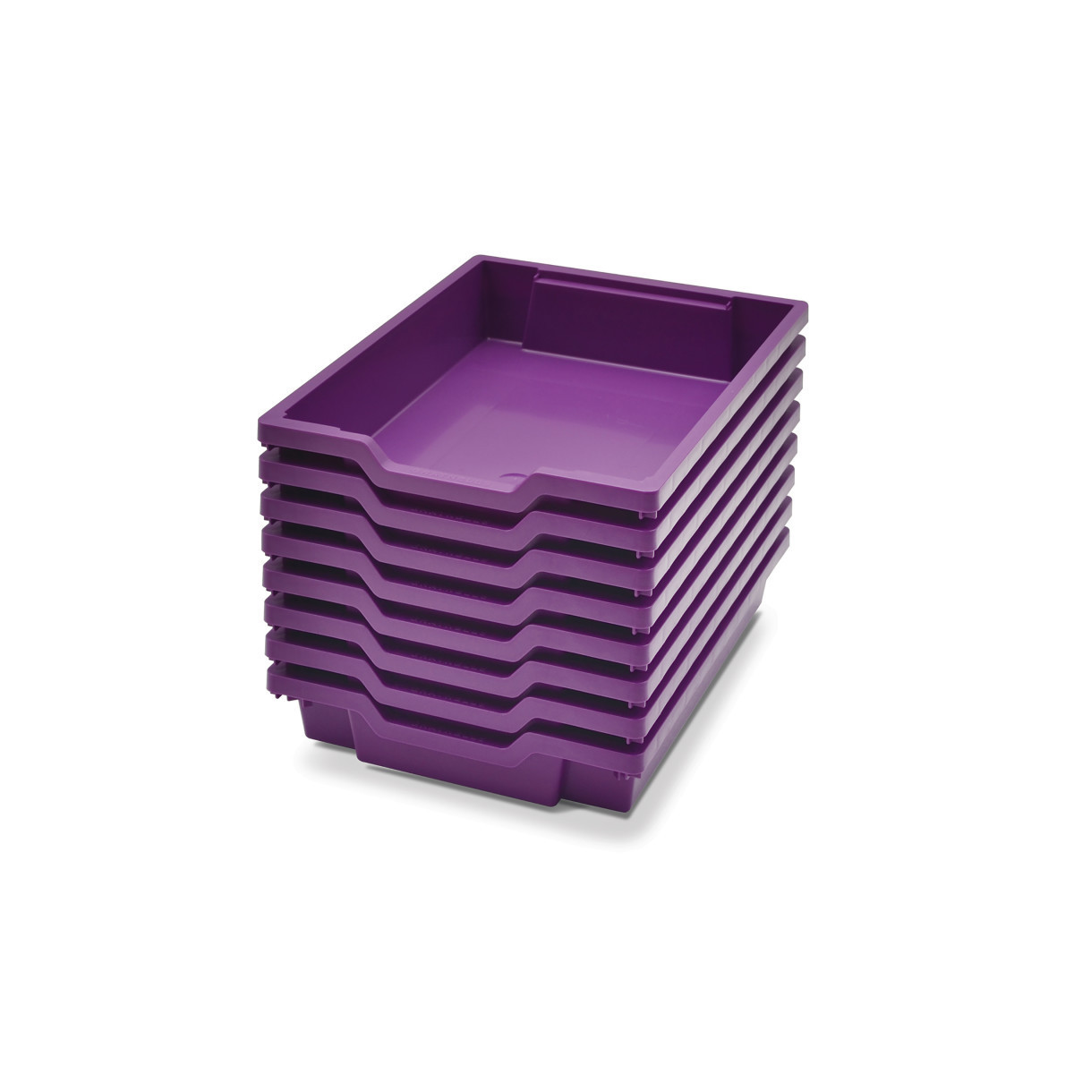 Gratnells Shallow Tray fits all standard school furniture. These storage trays are molded in polypropylene with no rough edges and are fully stackable. Colorfast and chemical resistant. Feature a built-in carry handle. Fully recyclable and come with a 5 year guarantee. Perfect for many other uses such as home, office and industrial. Tray measures 12.3" x 16.8" x 3". Pack of 8 trays.