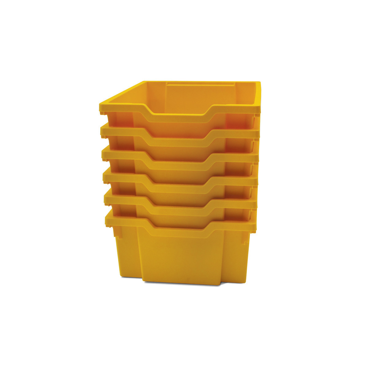 Gratnells Deep Tray will fit all standard school furniture. These storage trays are molded in polypropylene with no rough edges and are fully stackable. Colorfast and chemical resistant. Built in carry handles, fully recyclable and come with a 5 year guarantee. Perfect for many other uses such as home, office and industrial. Tray measures 12.3" x 16.8" x 5.9". Pack of 6 trays.