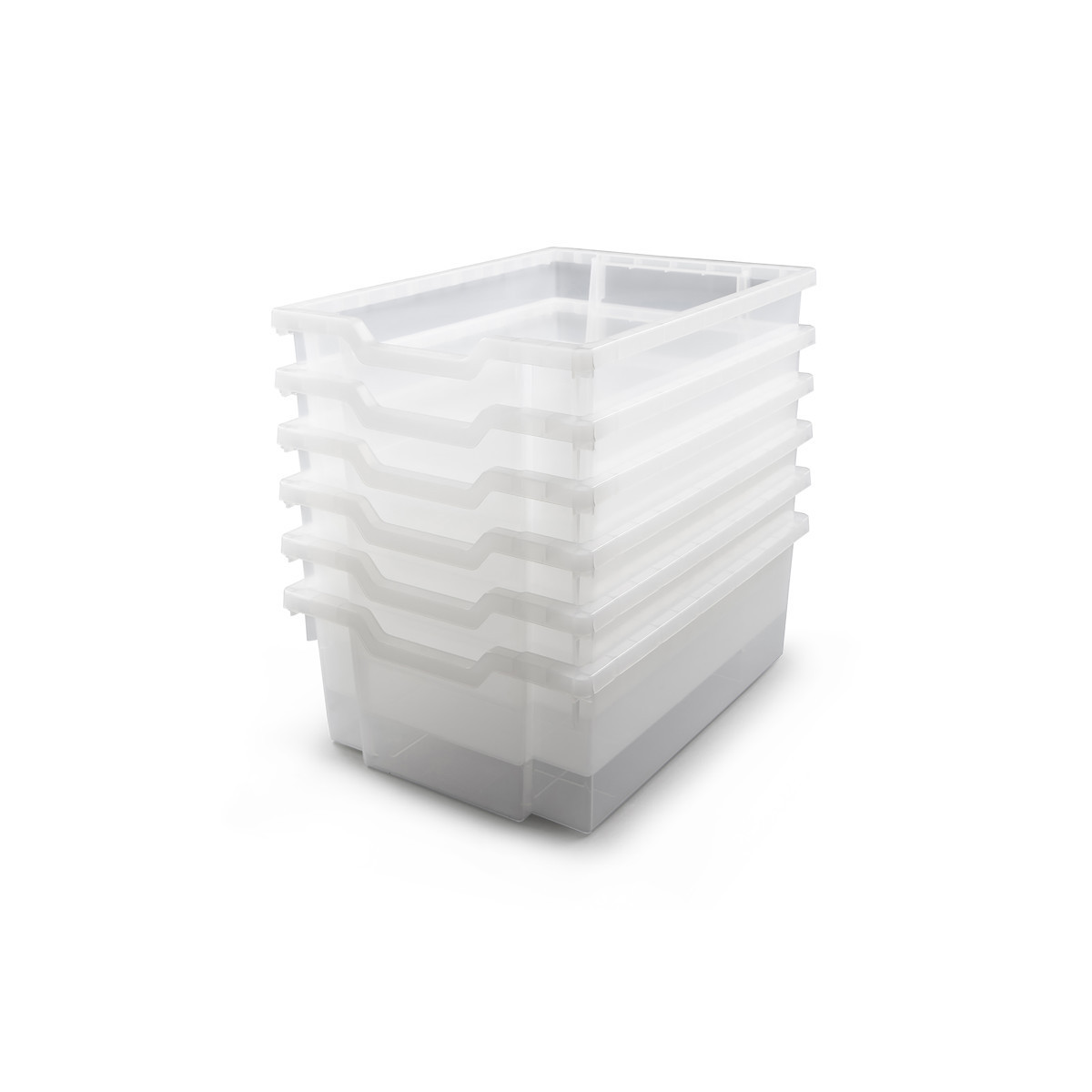 Gratnells Deep Tray will fit all standard school furniture. These storage trays are molded in polypropylene with no rough edges and are fully stackable. Colorfast and chemical resistant. Built in carry handles, fully recyclable and come with a 5 year guarantee. Perfect for many other uses such as home, office and industrial. Tray measures 12.3" x 16.8" x 5.9". Pack of 6 trays.