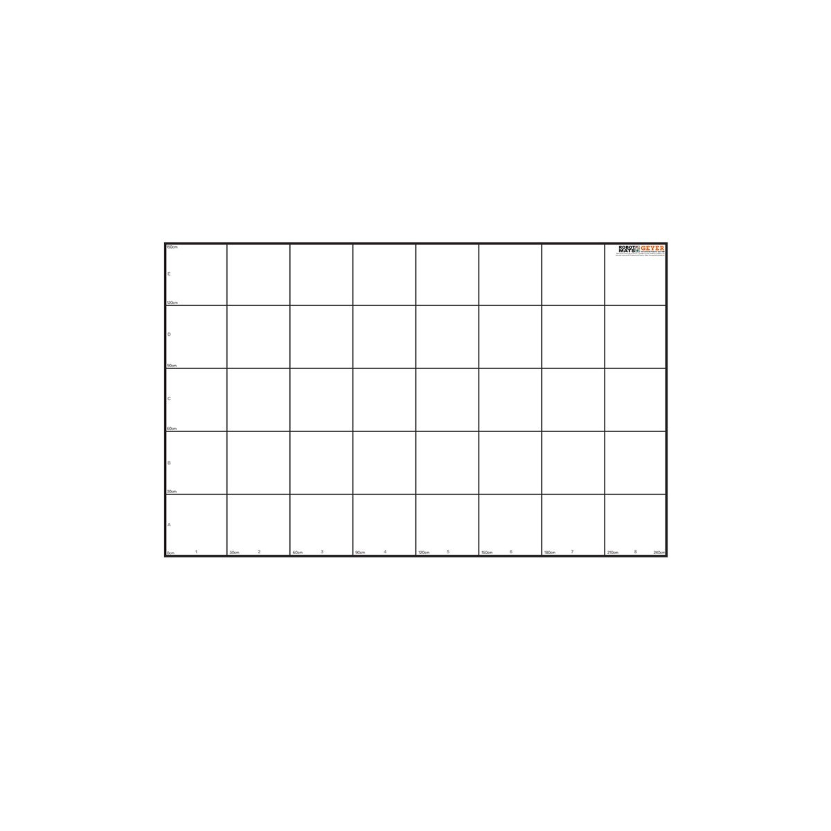 This mat is designed to the specification for the Wonder Workshop Dash and Dot Challenge. Includes the 1-8 and A-E labels. Features a crisp white background, and a black line grid. Printed in full color. Quality 13oz outdoor matte vinyl. Measures 150cm x 240cm with 30cm grid.
