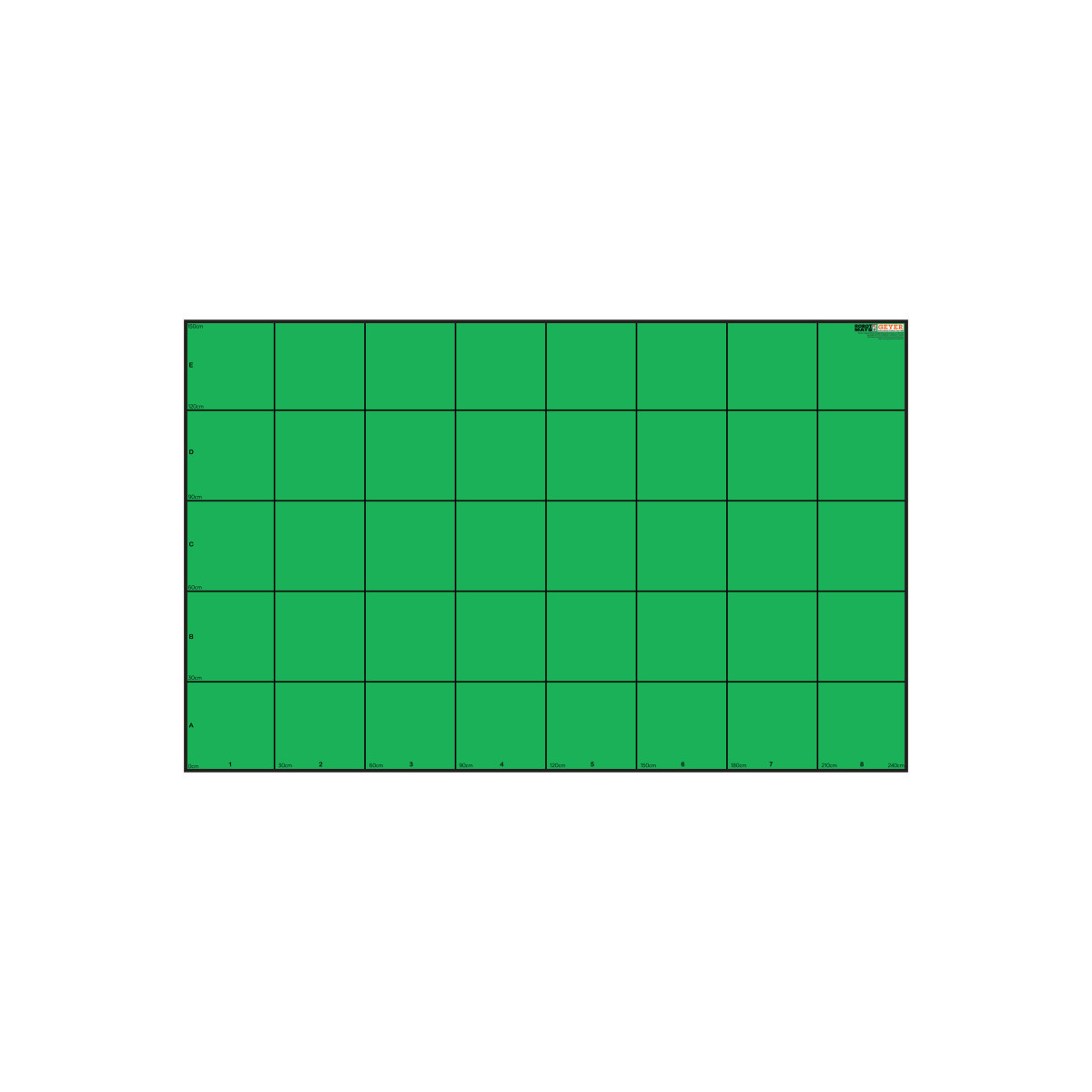 Wonder League Robotics Competition Grid Mat Green Screen Version. This mat is designed to the specification for the Wonder Workshop Dash and Dot Challenge. Includes the 1-8 and A-E labels. Printed in full color on quality 13oz outdoor matte vinyl. Measures 150cm x 240cm with 30cm grid.
