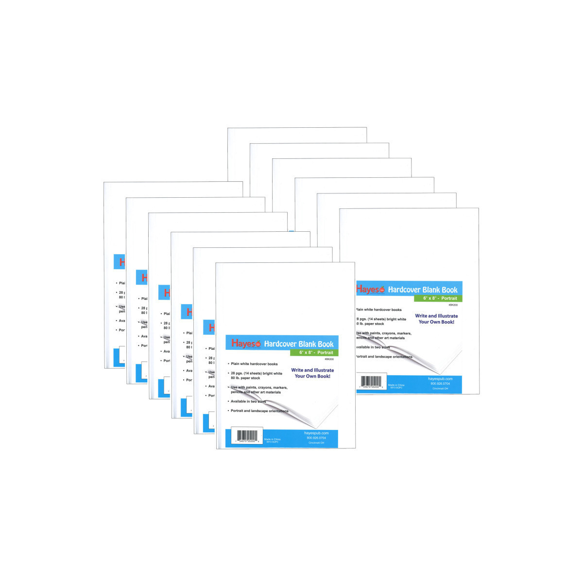 Write and illustrate your own book, document a special event or create a travel journal! Plain white hardcover blank books for the author and illustrator in every student. Bright white paper is ideal for paints, crayons, markers, pencils and other art materials. Book contains 28 pages (14 sheets) of bright white 80# paper stock. Measures 6" wide x 8" high x 0.375" deep. Sold as a pack of 12 books.