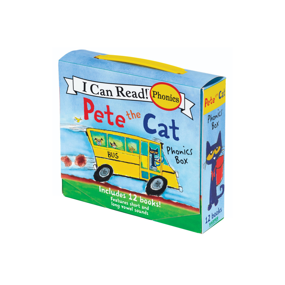 New York Times bestselling author and artist James Dean's Pete the Cat helps kids learn to read with phonics. Who knew reading could be so groovy! Reviewed by a phonics expert, these twelve short full-color books feature repeated examples of short and long vowel sounds and common sight words. Each of the simple stories in this box set is designed to teach kids how to master reading while rocking out with Pete the Cat. Phonics teaches children the relationship between letters and the sounds they make. A child who has mastered these relationships has an excellent foundation for learning to read and spell. According to the National Institute of Child Health and Human Development, a child who has learned phonics has a method to recognize familiar words and "decode" unfamiliar ones. Correlates to the Common Core State Standards in English Language Arts.