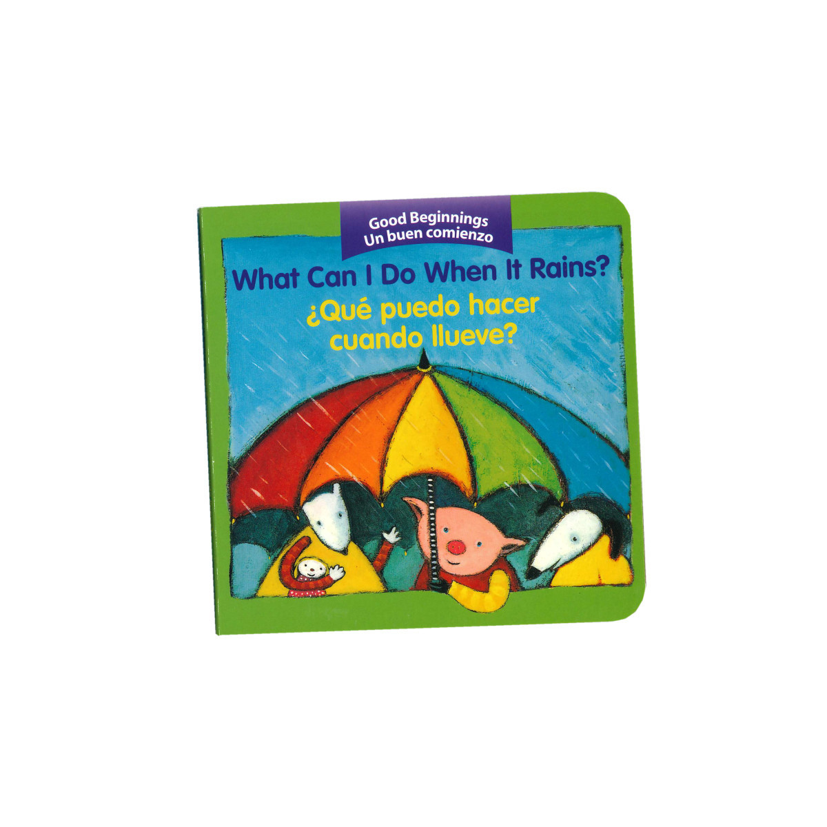 This series of full-color board books, with both English and Spanish on each page, will intrigue youngsters while helping them build vocabulary and an awareness of the world around them. The books feature charming illustrations and thoughtfully chosen words, offering an enchanting introduction to vocabulary. What Can I Do When It Rains? (¿Qué puedo hacer cuando llueve?) includes simple verb phrases, such as "play with friends" and "jump in puddles," to answer its question, making this an excellent book to introduce even very young children to basic sentence structure.